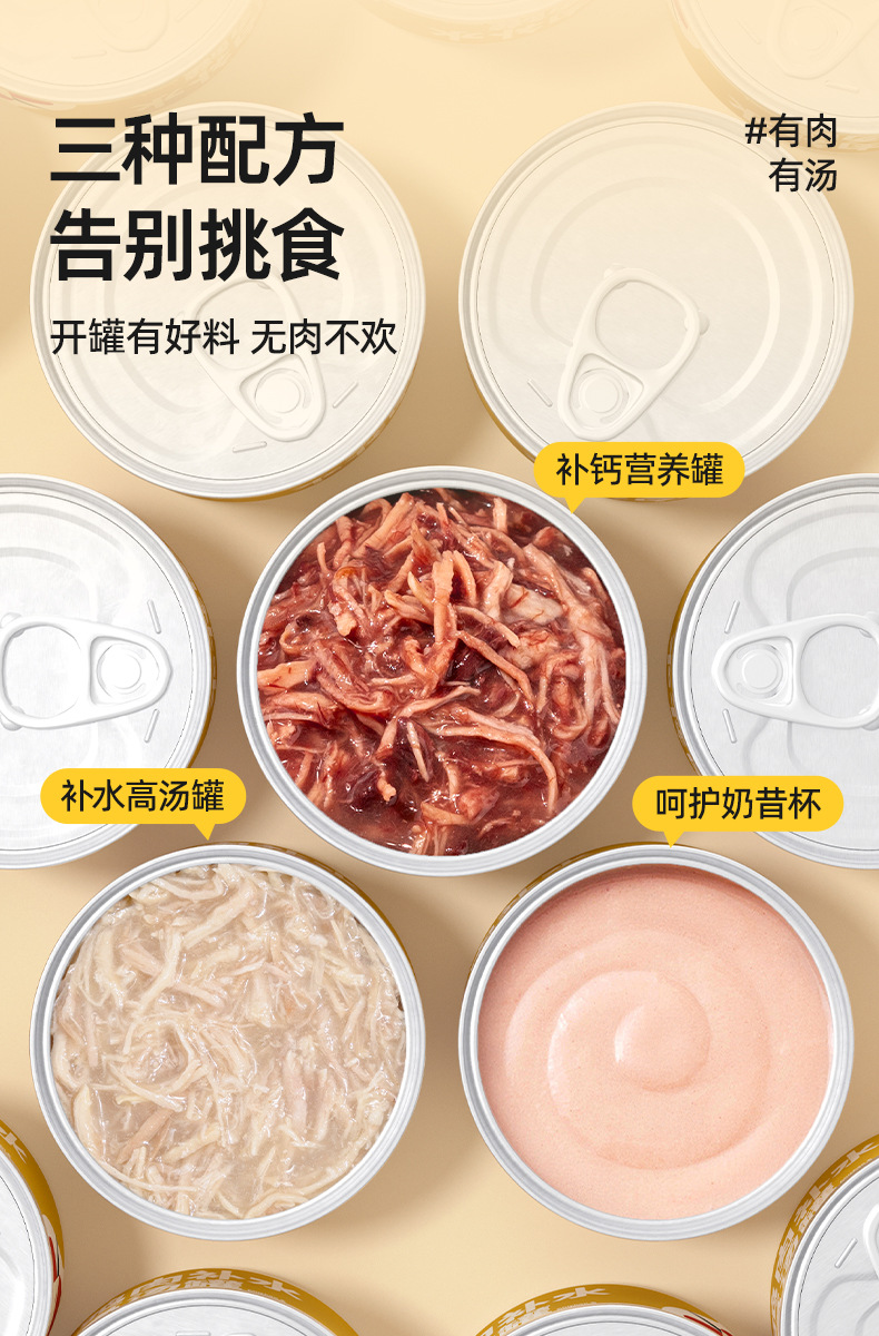 고양이 간식 닭고기 쇠고기 우유 고양이 통조림 85g 애완 동물 간식 수프 수분 공급 고양이 습식 식품 도매 고양이 통조림스토어 가기