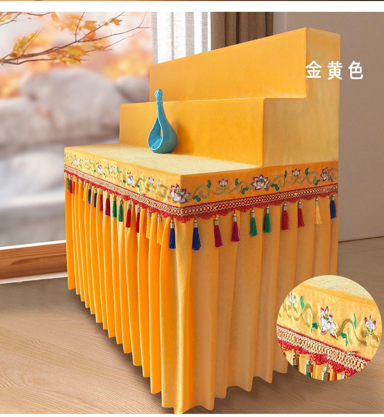 식탁보 부처님 내각 두꺼운 황금 벨벳 연꽃 자수 레이스 부처님 홀 식탁보스토어 가기