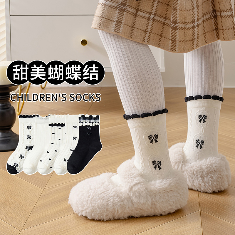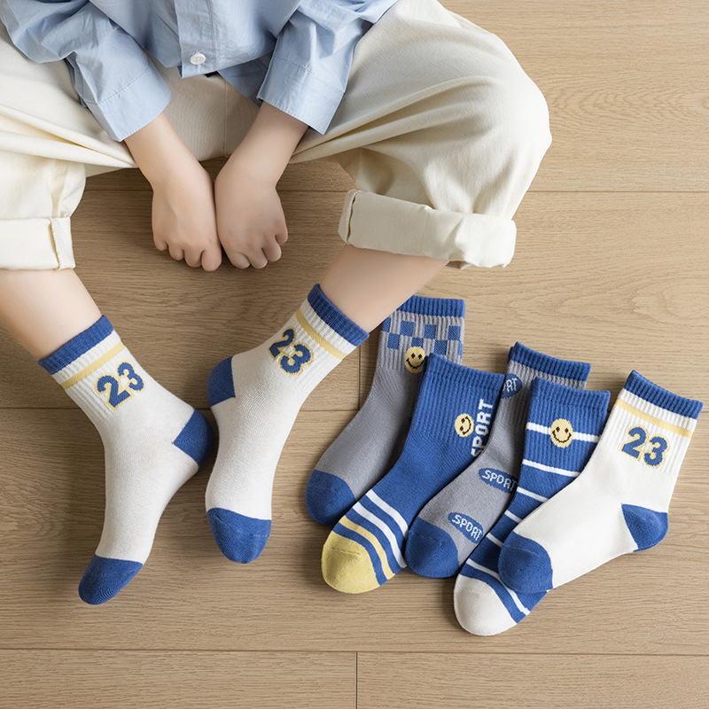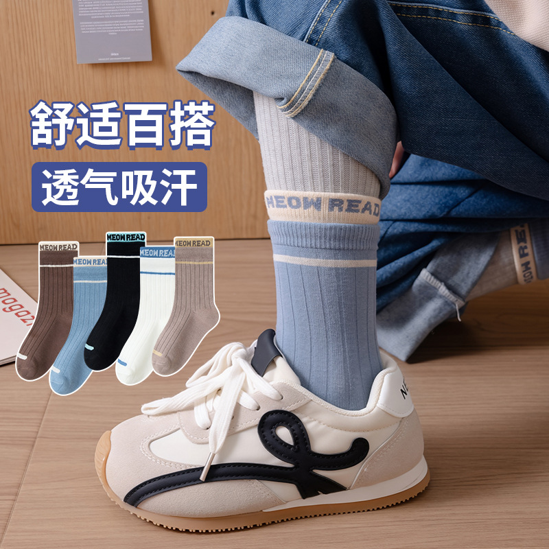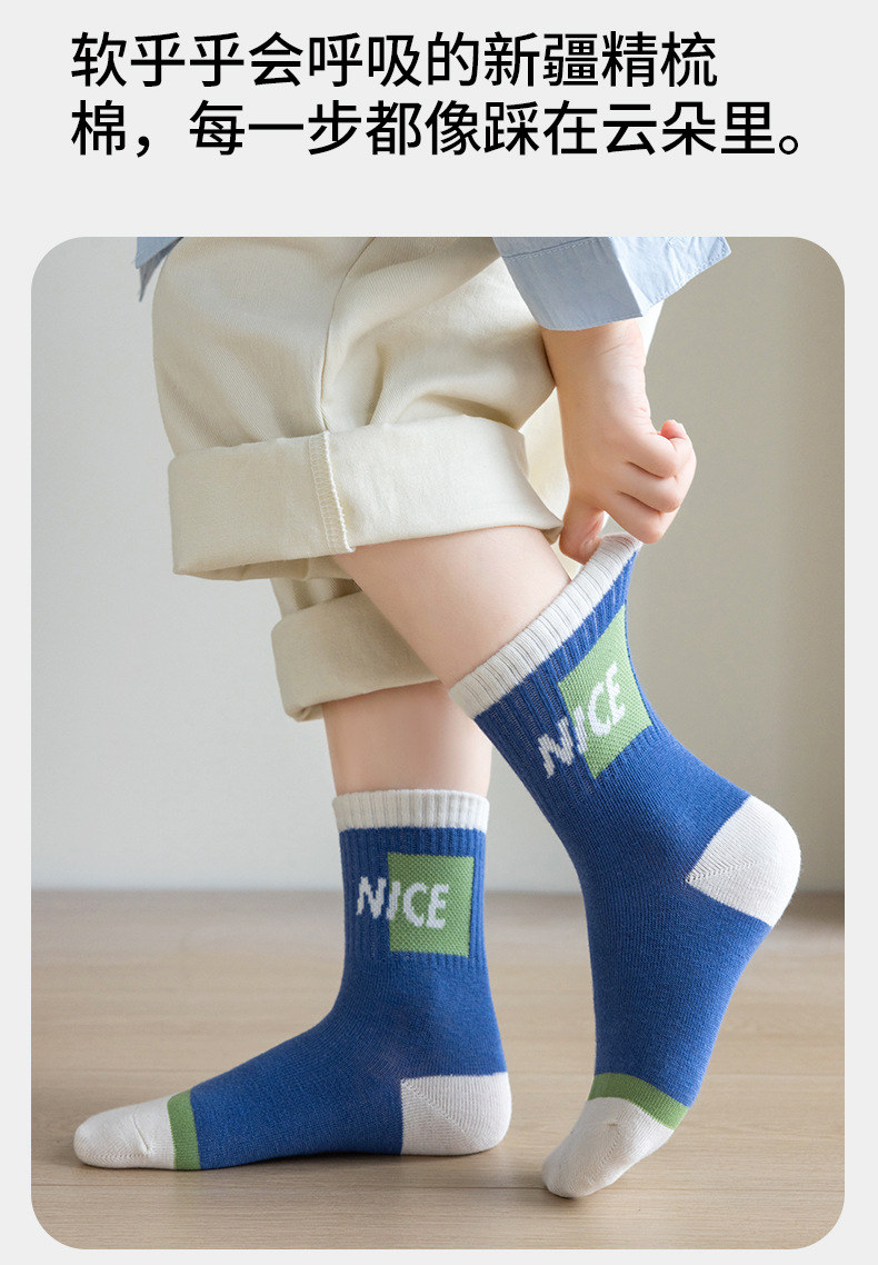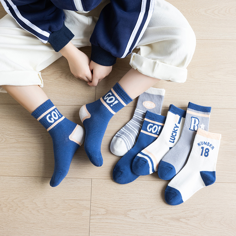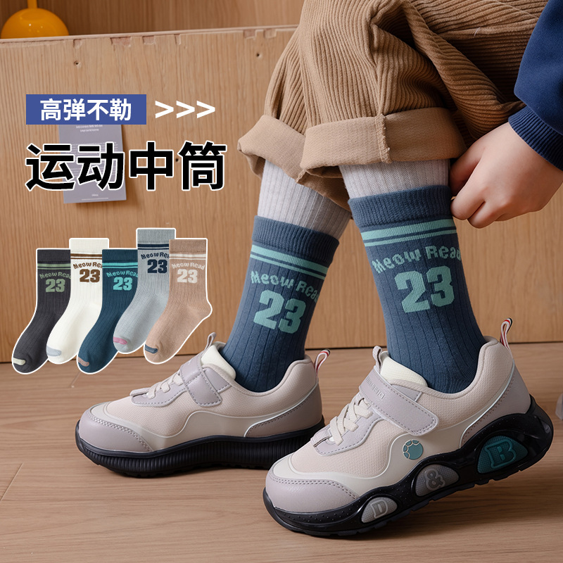 가을 겨울 아동용 양말 A급 통기성 면 양말 남녀 공용 스포츠 단색 트렌디 양말 중대형 아동용 중간 길이 양말 도매스토어 가기