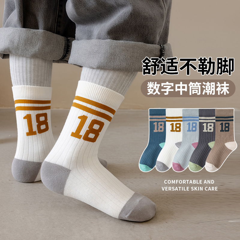 가을 겨울 아동용 양말 A급 통기성 면 양말 남녀 공용 스포츠 단색 트렌디 양말 중대형 아동용 중간 길이 양말 도매