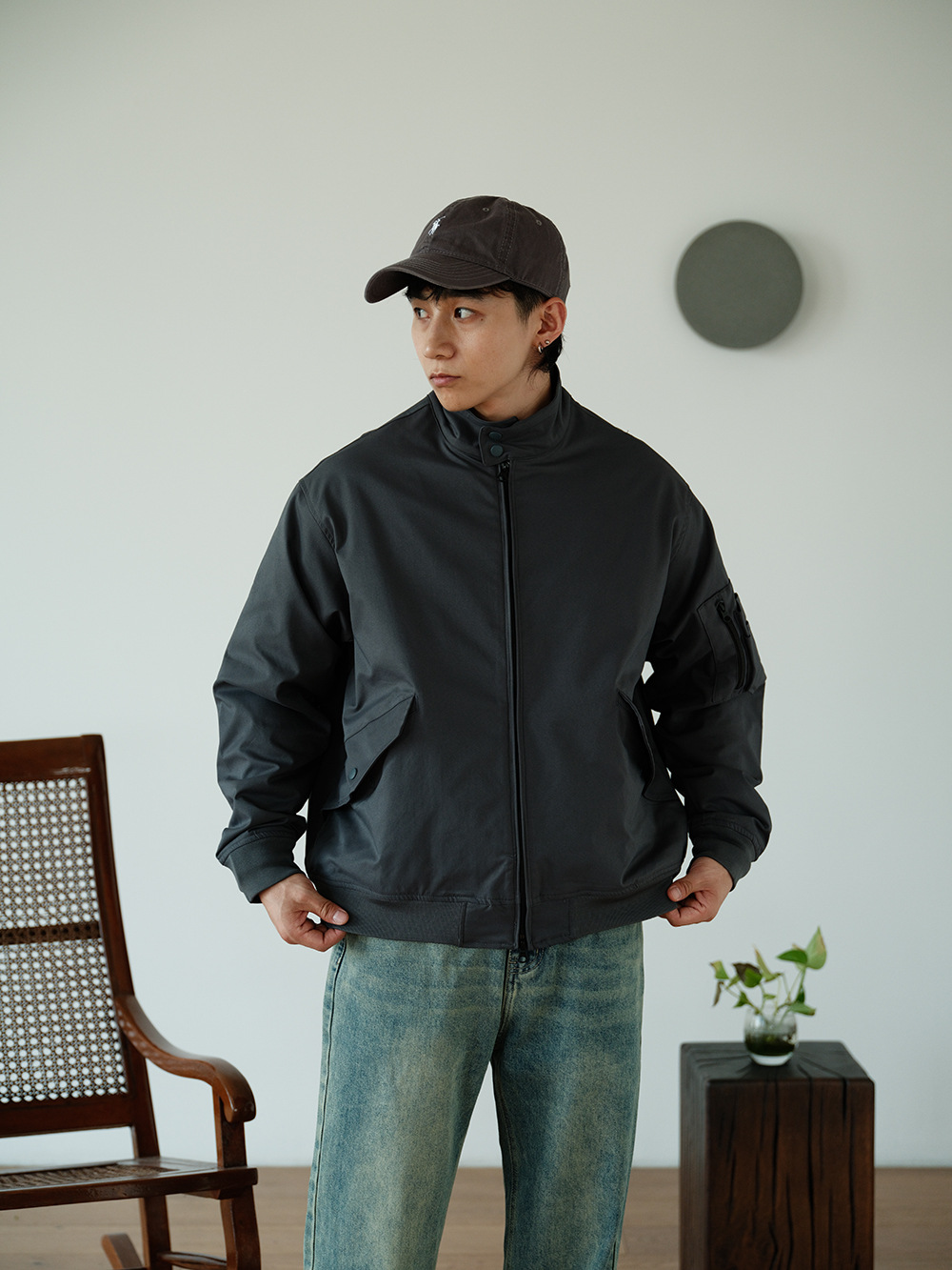 TRS 남성복丨24AW 일본 복고풍 짧은 테플론 3방한 헐링턴 스탠드 칼라 재킷 남성용스토어 가기