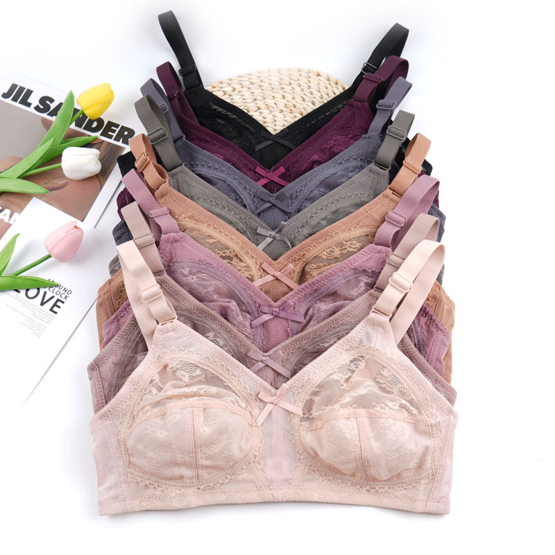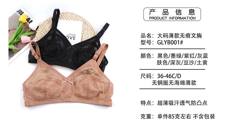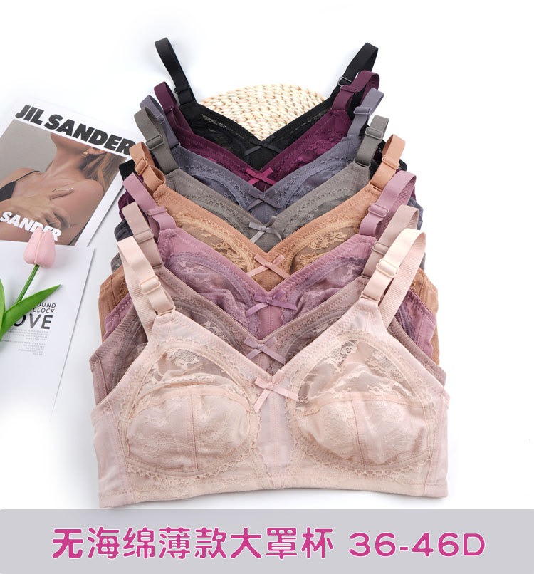 공장 재고 플러스 사이즈 없음 반지 속옷 울트라 얇은 반투명 레이스 섹시한 브래지어 스폰지 브라 D 컵스토어 가기