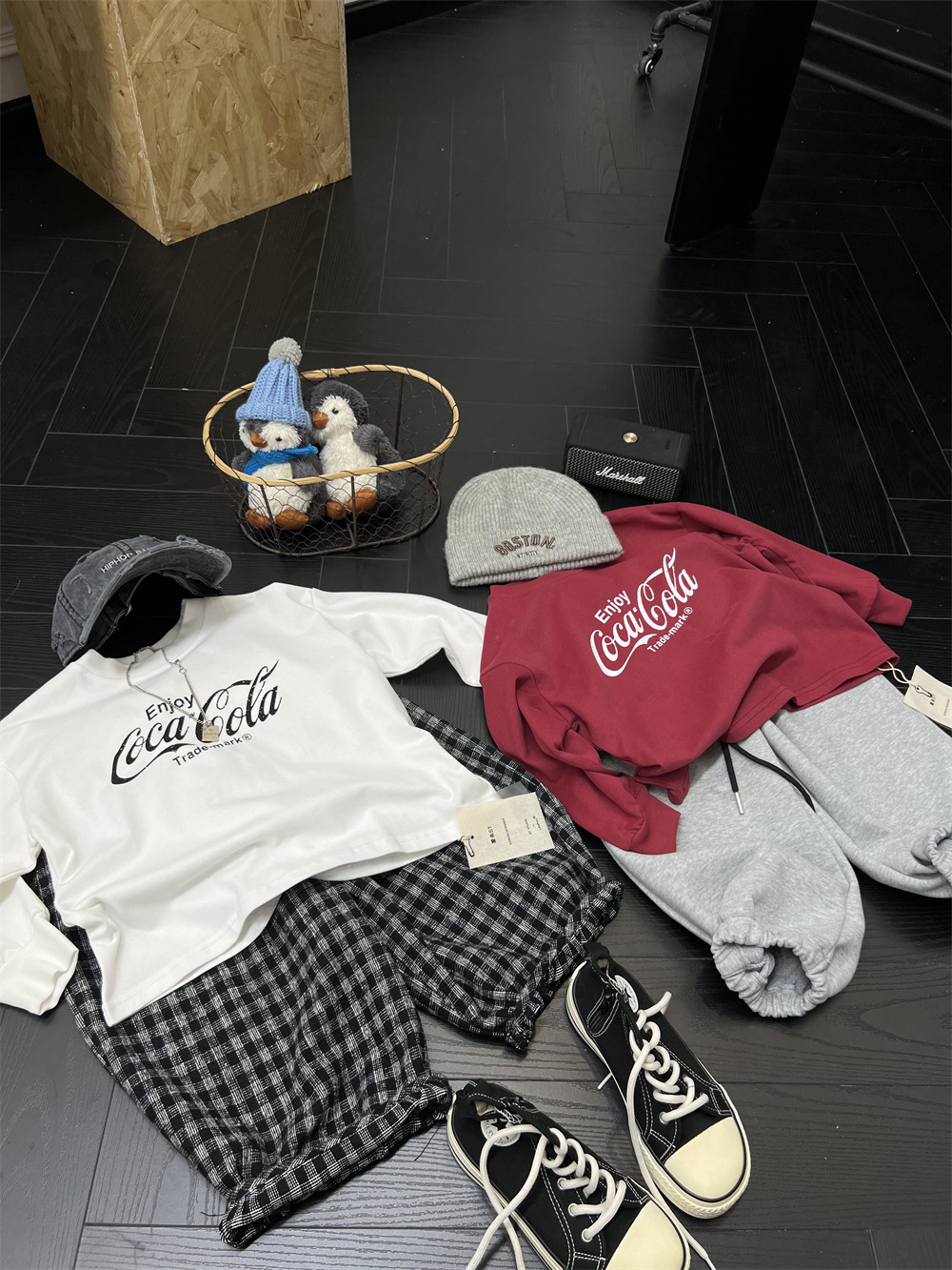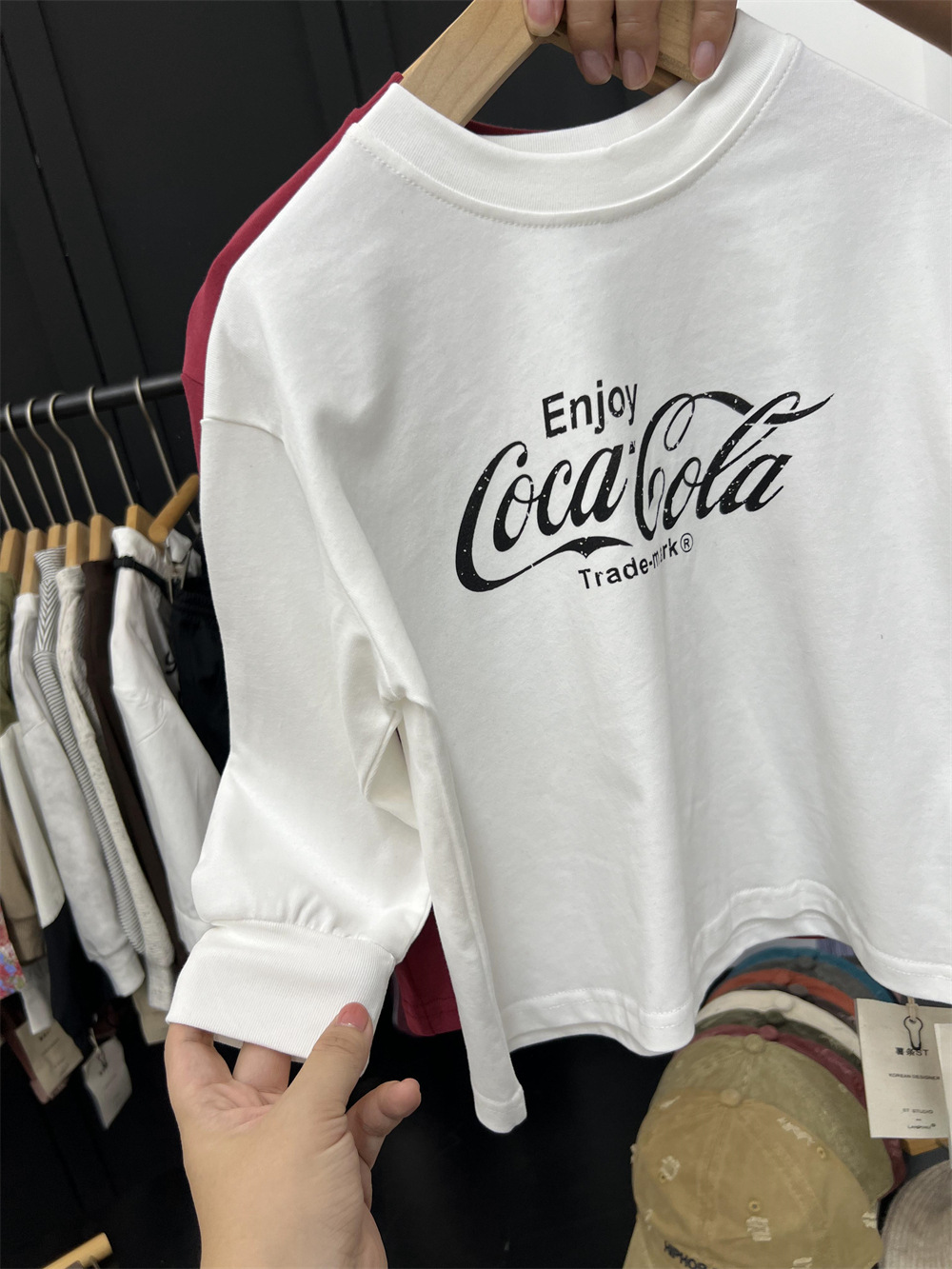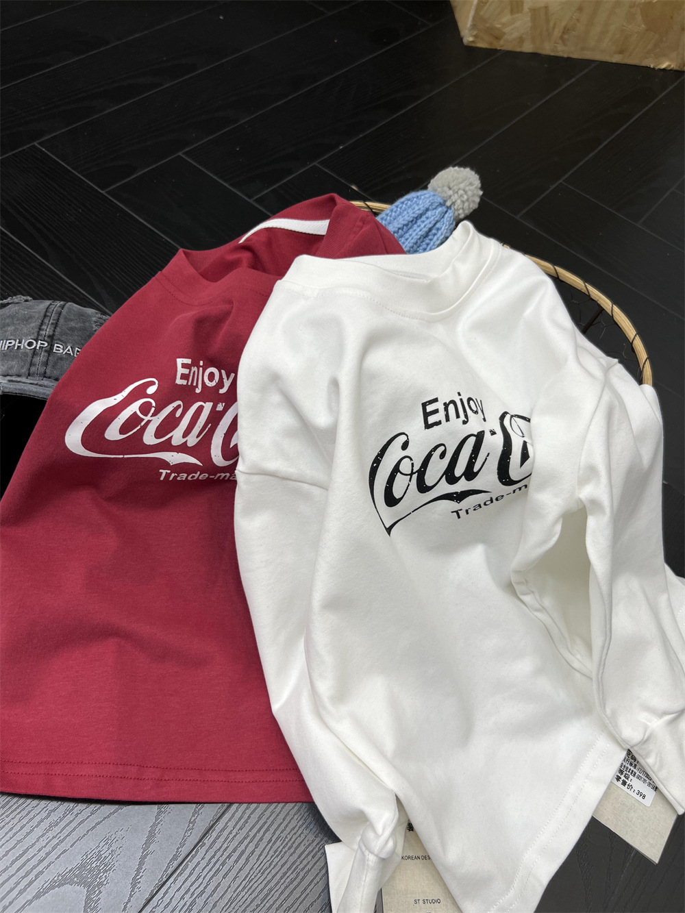 24 어린이 가을 소년과 소녀 미국 콜라 샌딩 긴팔 티셔츠 루즈 소프트 왁스 내부 편지 베이스 셔츠스토어 가기