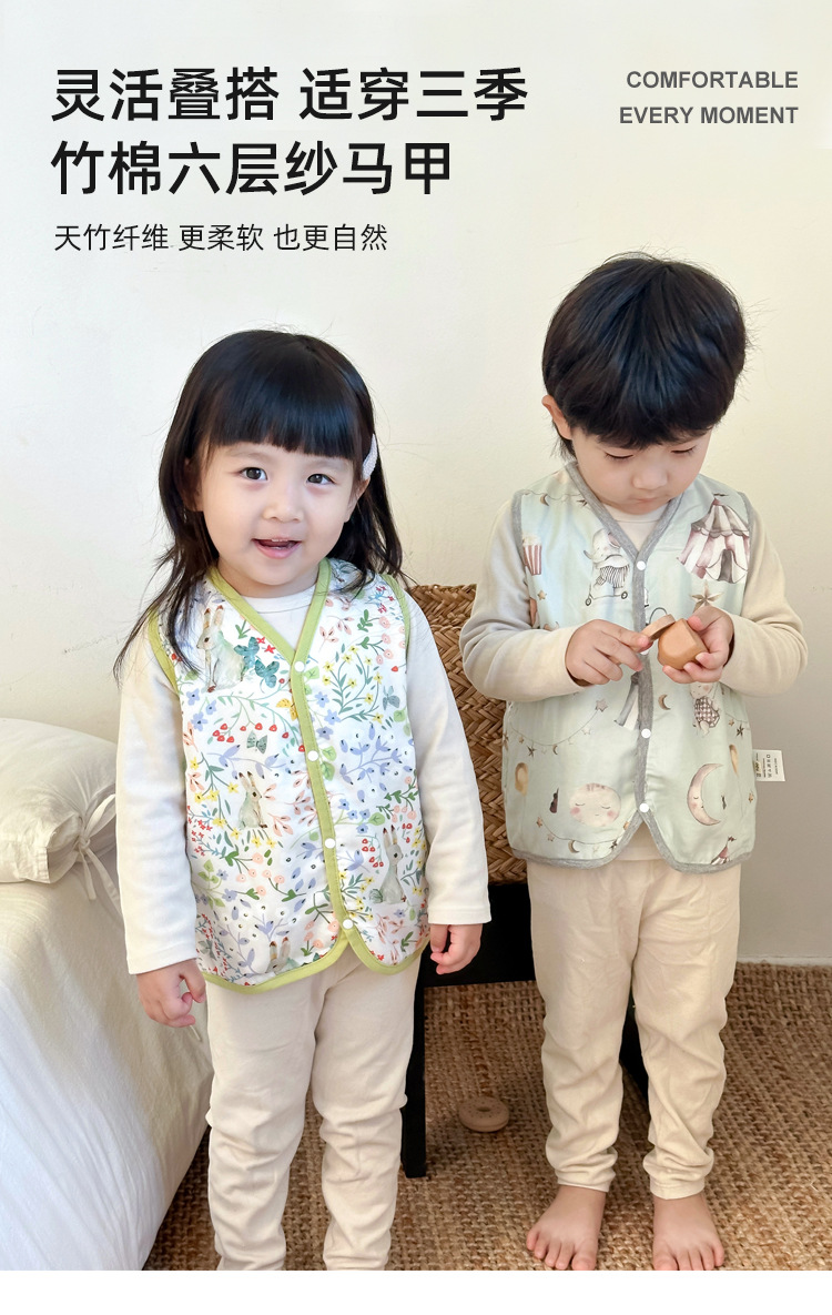 • 열대우림 파티 - 대나무 면 6겹 거즈 조끼