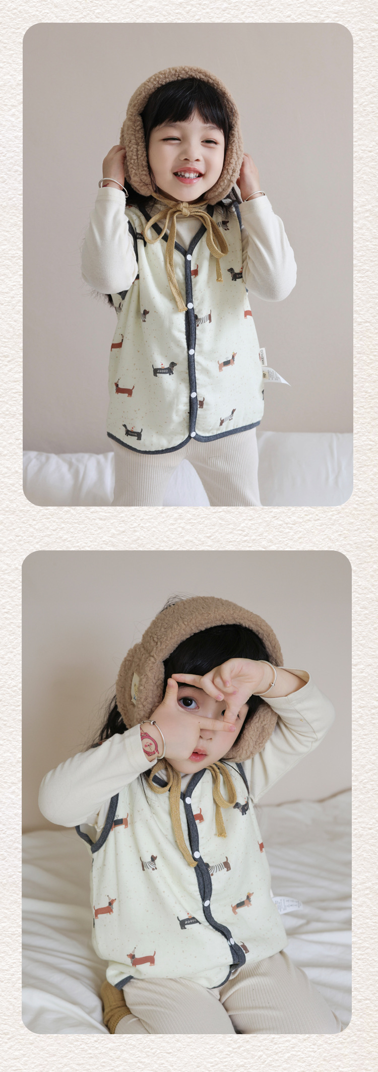 • 닥스훈트 도트 대나무 면 6겹 거즈 조끼
