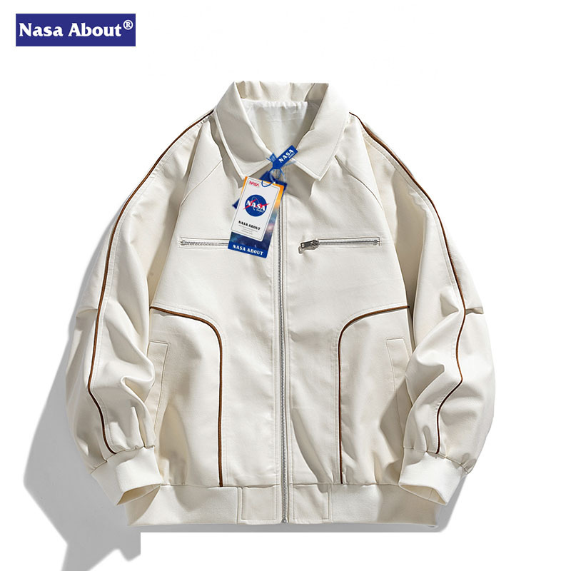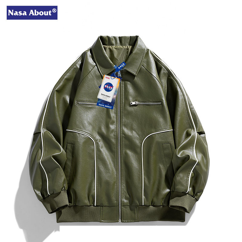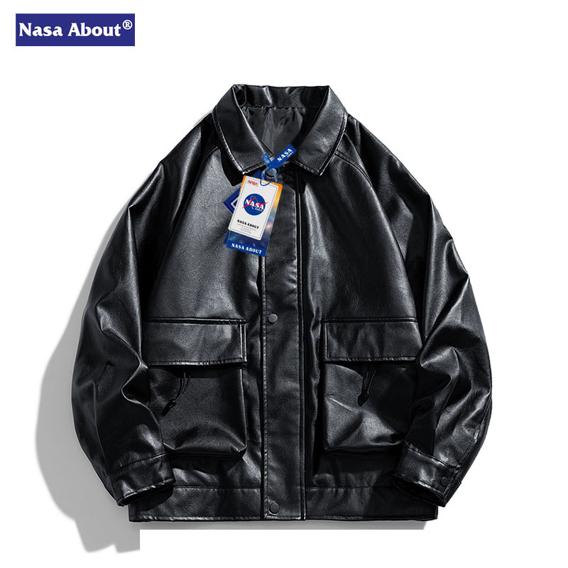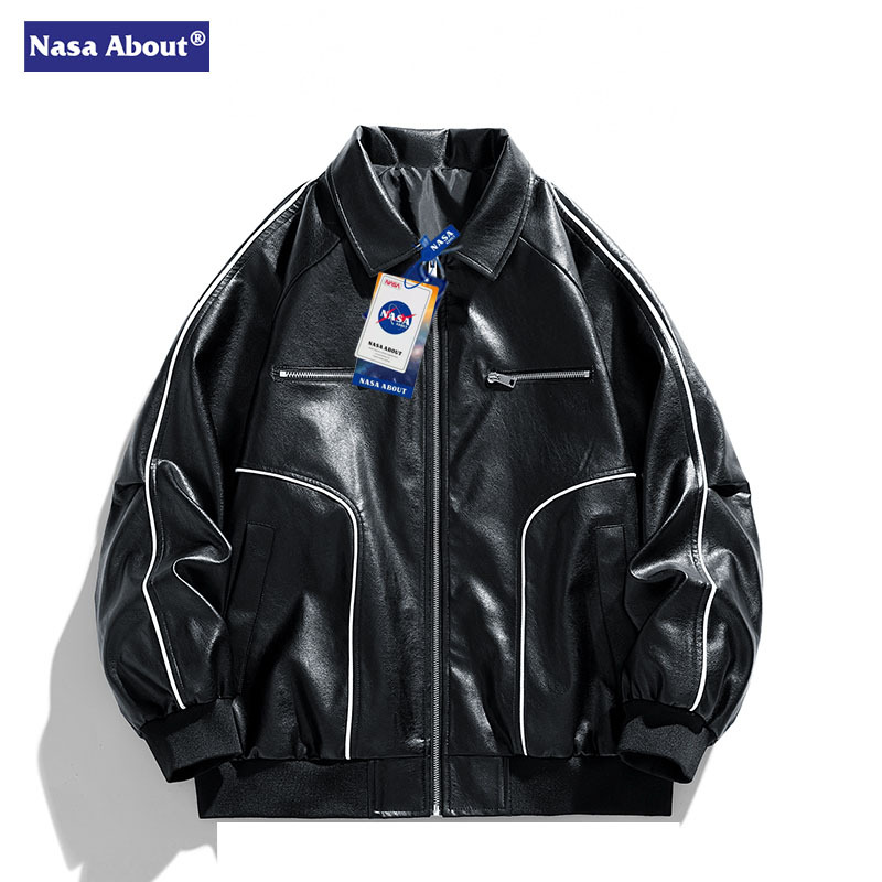 Wassup NETS 봄과 가을 미국 스타일 레트로 힙합 스타일 가죽 옷깃 재킷 남성용 잘 생긴 자켓 트렌디 브랜드 루즈