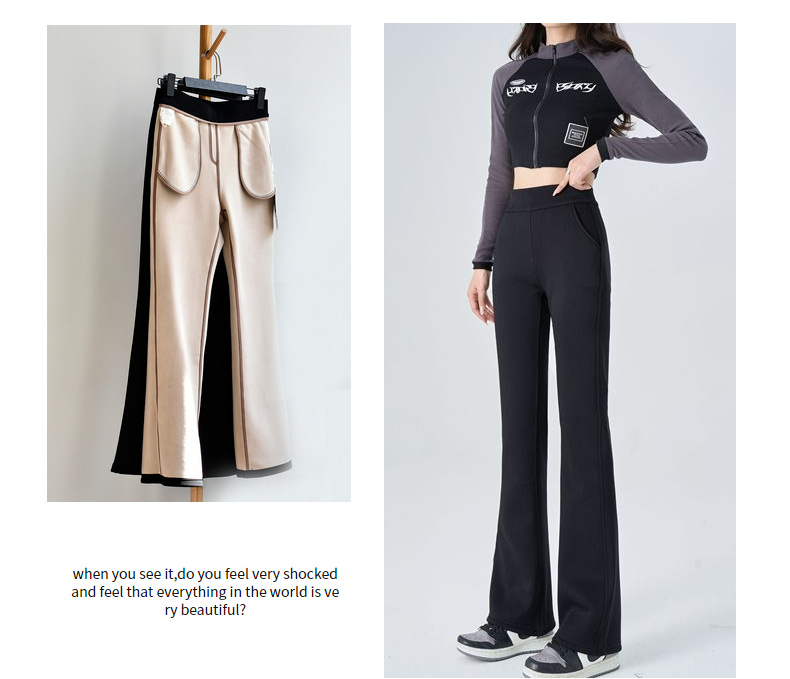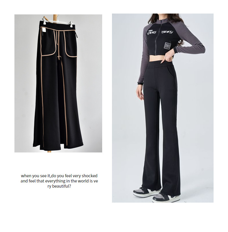 [송송 슈퍼모델 바지] 가을 겨울 신상 나일론 루즈 슬리밍 플러스 벨벳 두꺼워 따뜻한 캐주얼 살짝 플레어 여성 바지스토어 가기