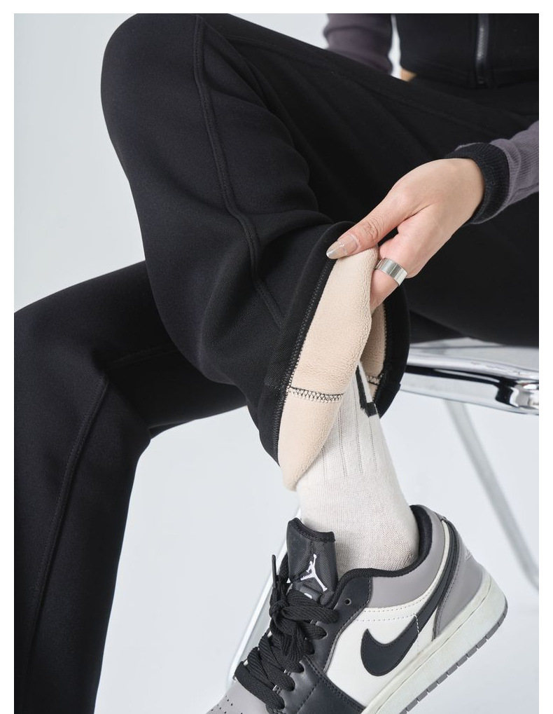 [송송 슈퍼모델 바지] 가을 겨울 신상 나일론 루즈 슬리밍 플러스 벨벳 두꺼워 따뜻한 캐주얼 살짝 플레어 여성 바지