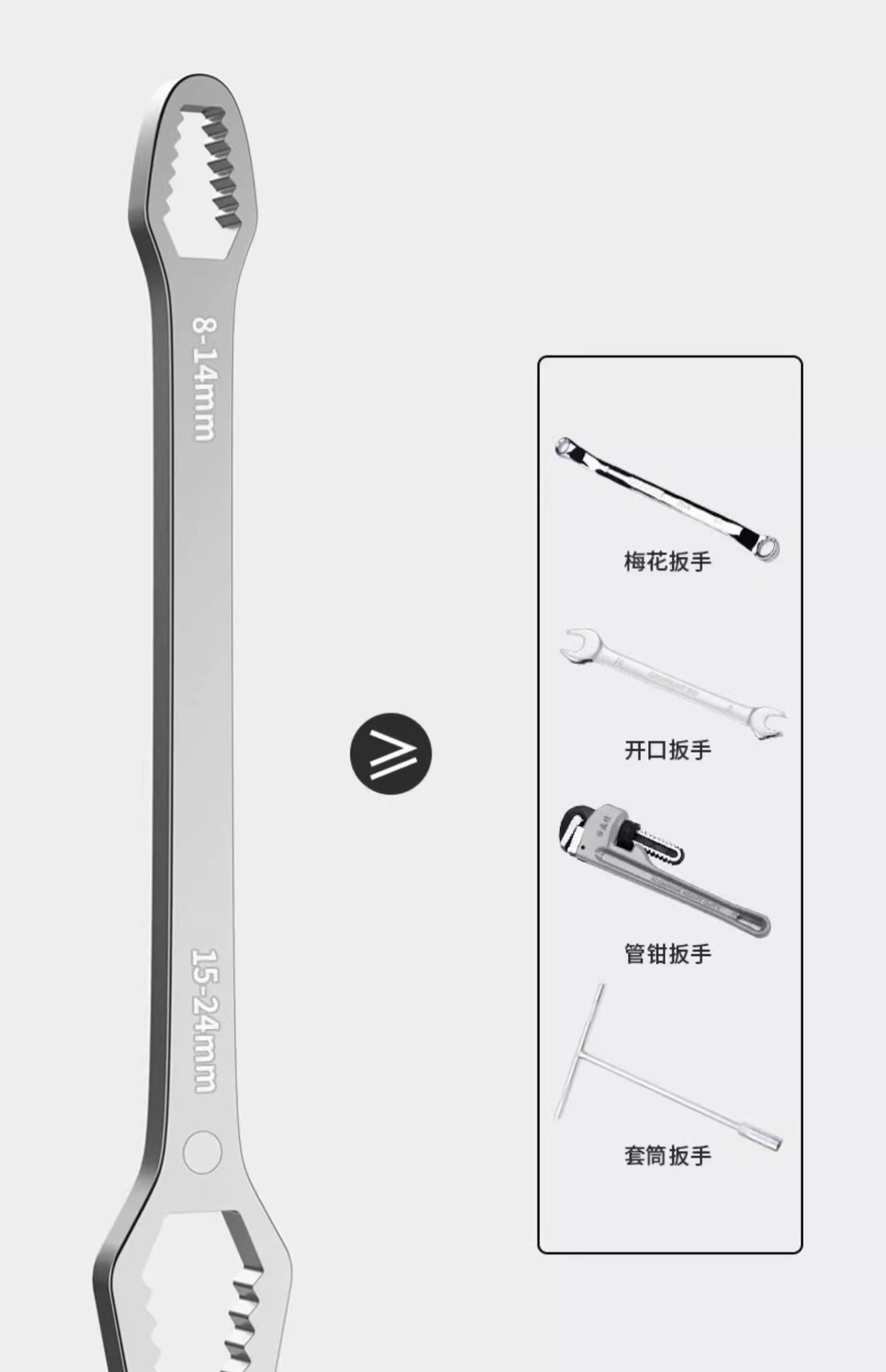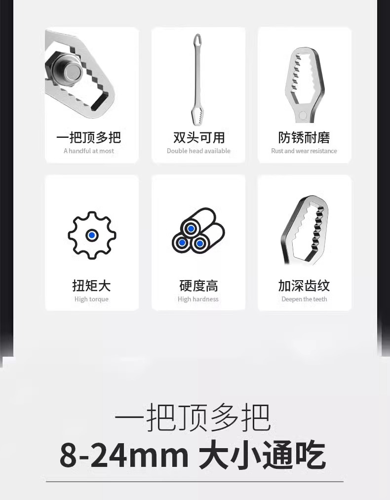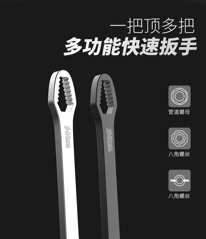 도매 보편적 인 렌치 다기능 오픈 링 렌치 더블 헤드 자체 조임 8-24mm 조절 렌치 공구 세트스토어 가기