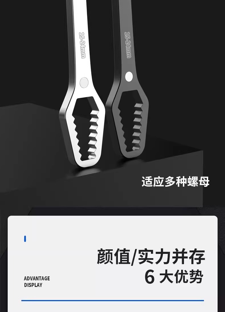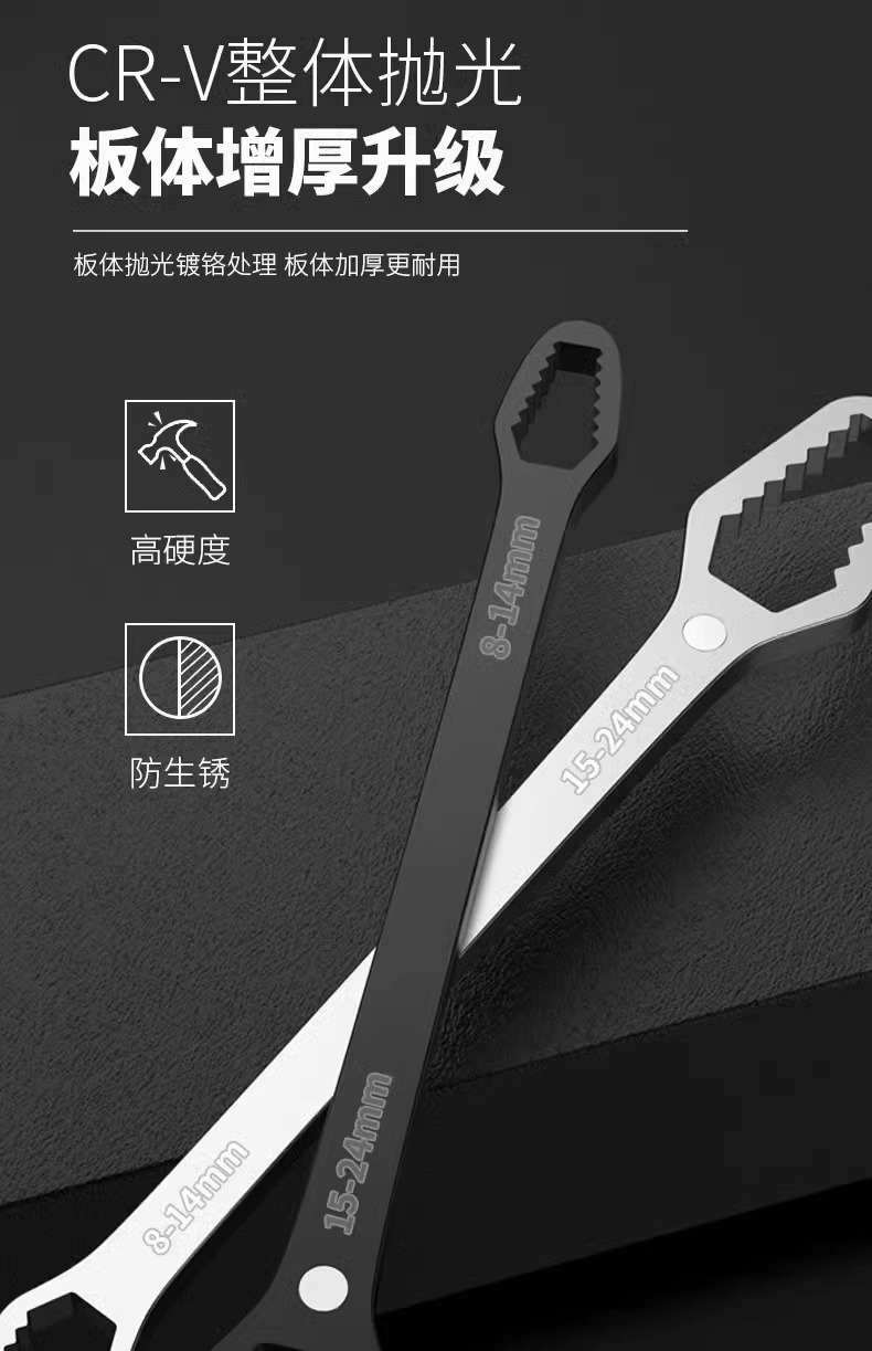 도매 보편적 인 렌치 다기능 오픈 링 렌치 더블 헤드 자체 조임 8-24mm 조절 렌치 공구 세트