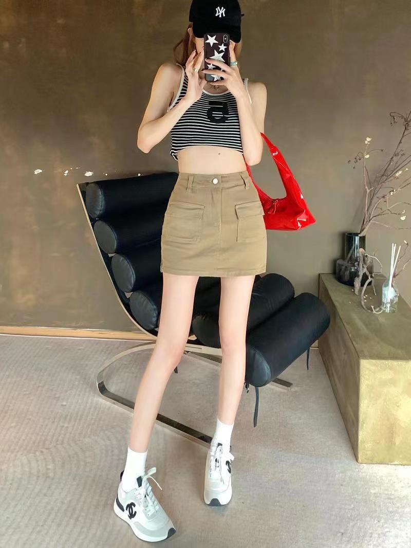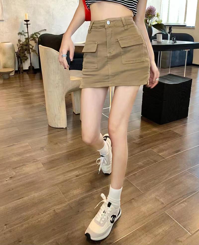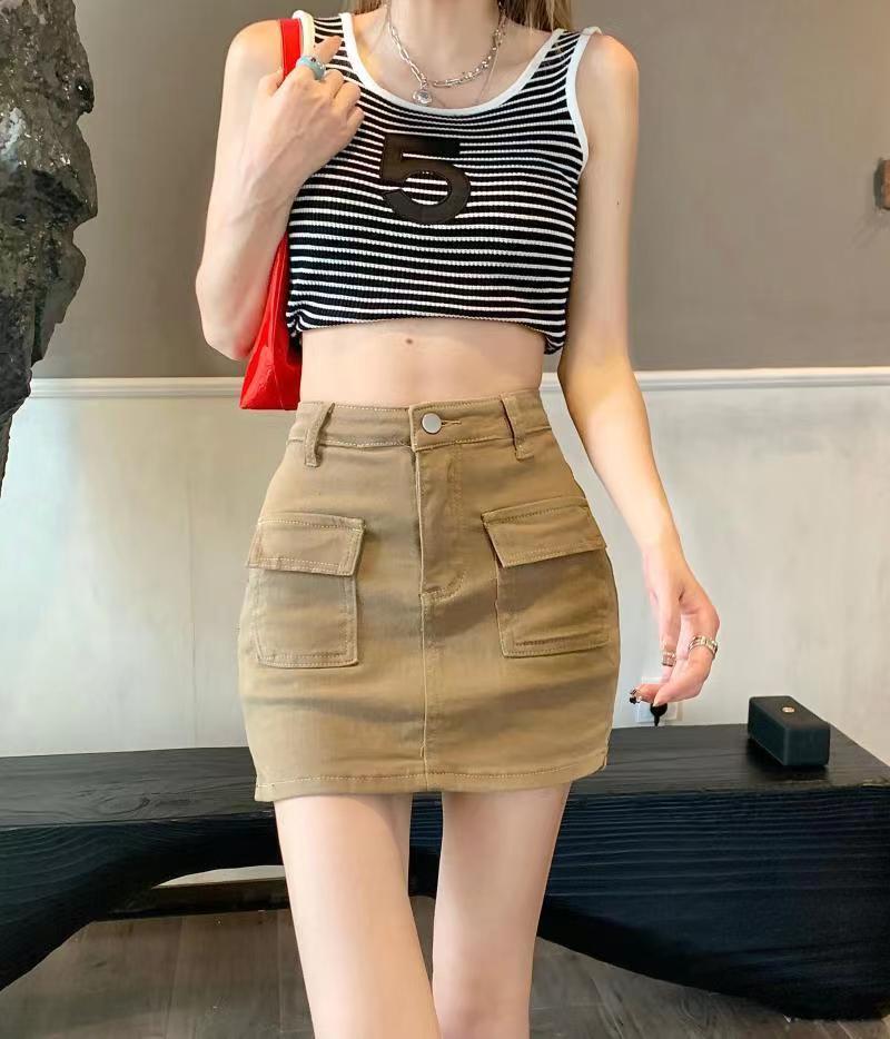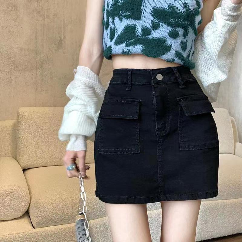 틈새 디자인 감각 카키 데님 엉덩이 치마 여성의 2024 여름 새로운 높은 허리 슬리밍 작업 치마스토어 가기