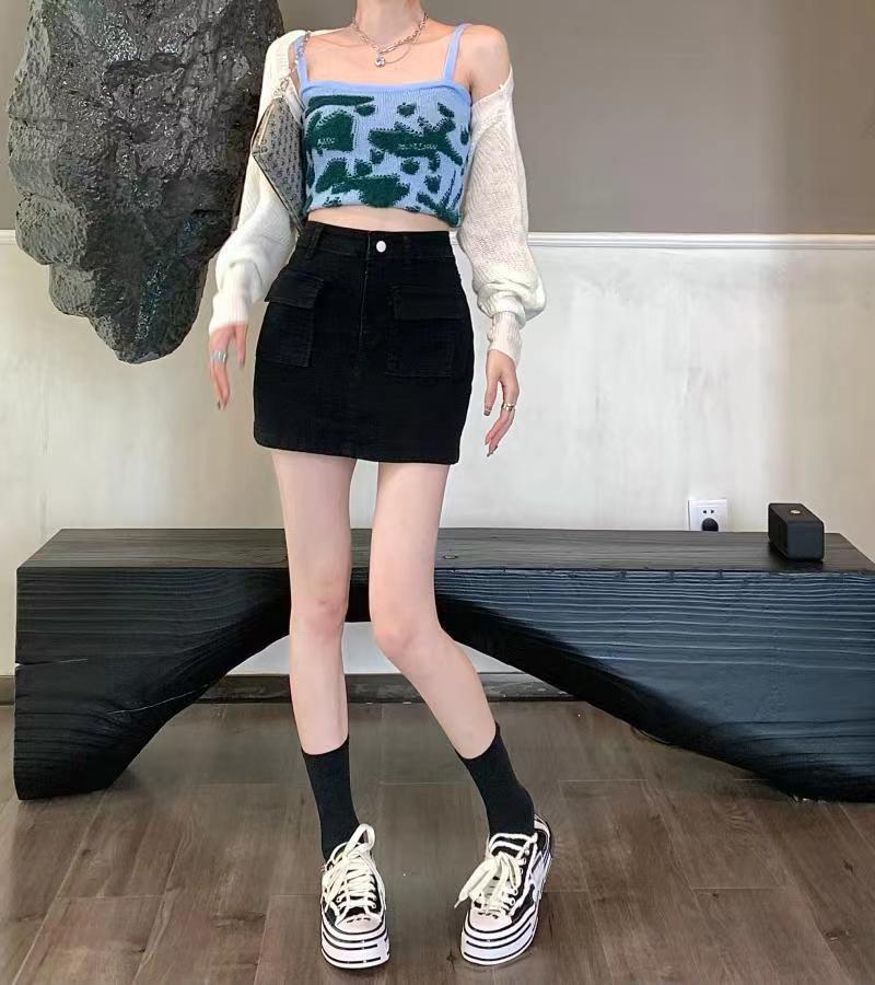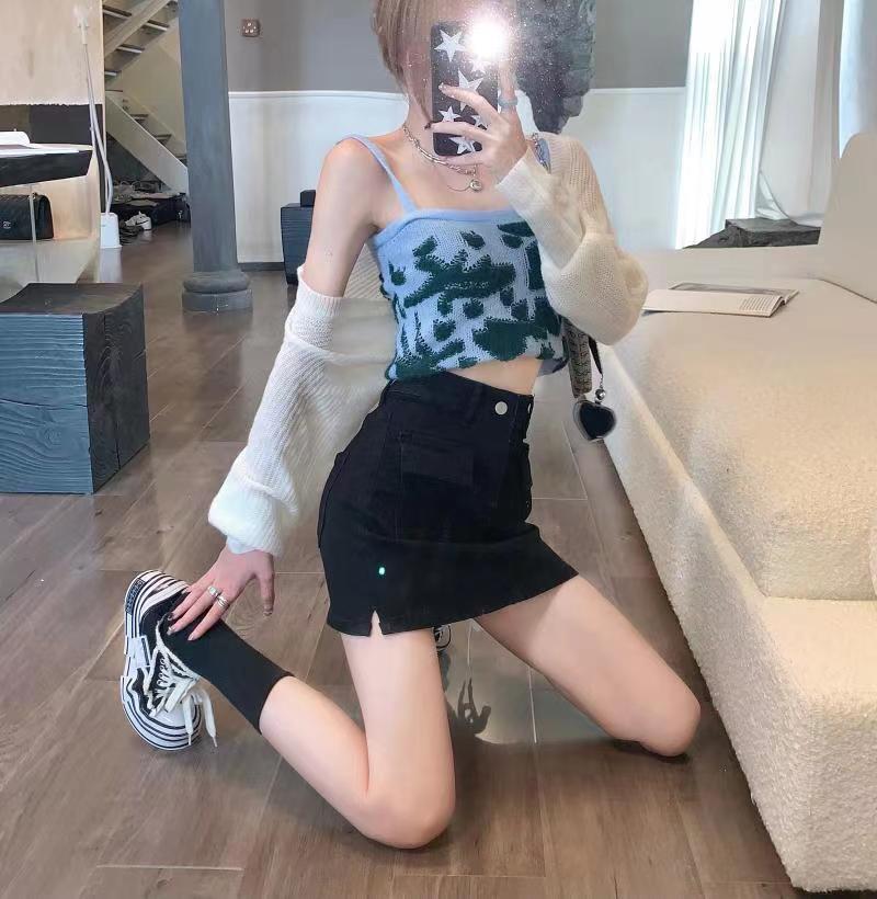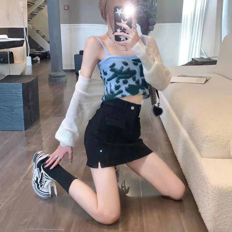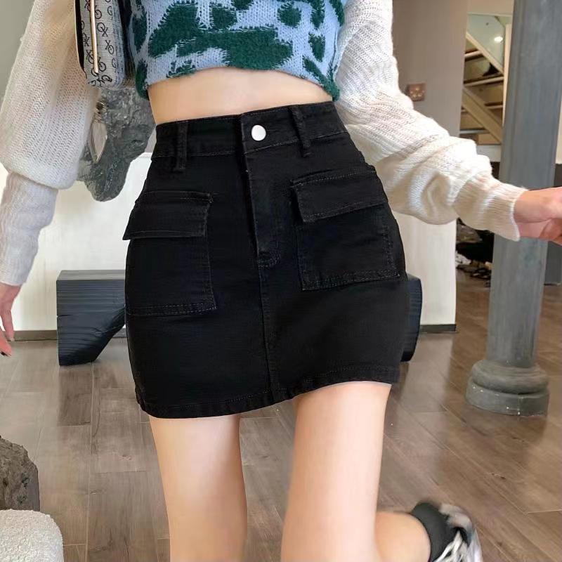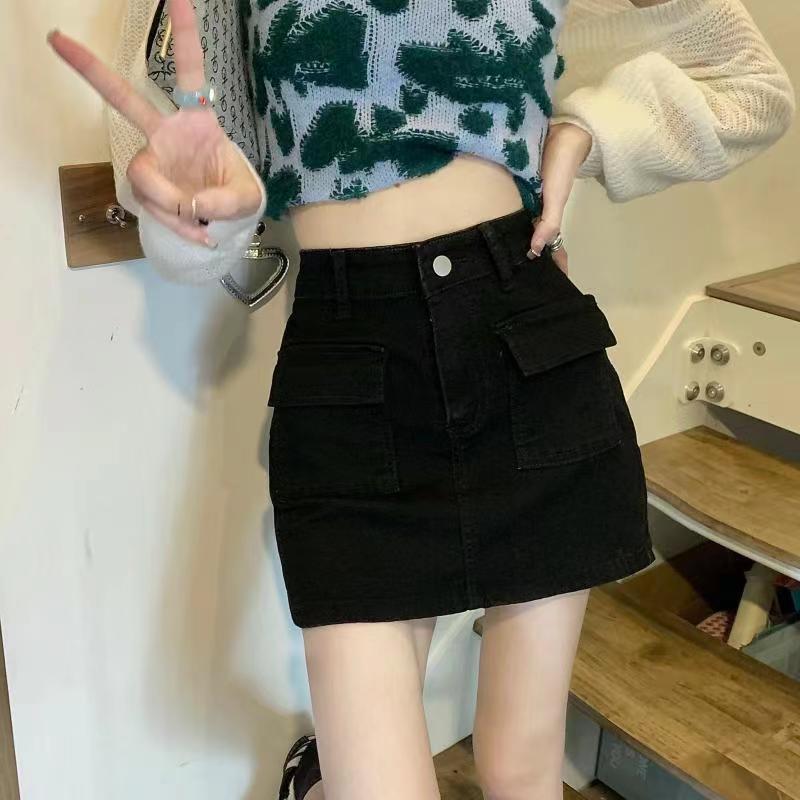 틈새 디자인 감각 카키 데님 엉덩이 치마 여성의 2024 여름 새로운 높은 허리 슬리밍 작업 치마스토어 가기