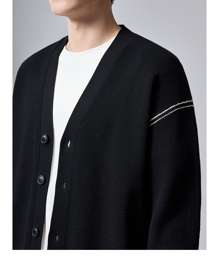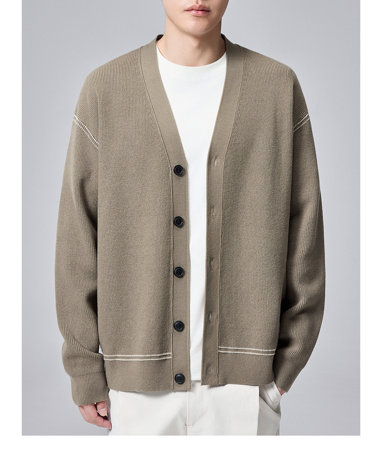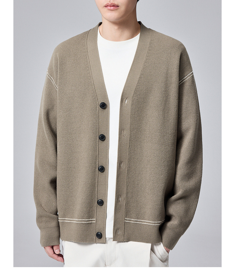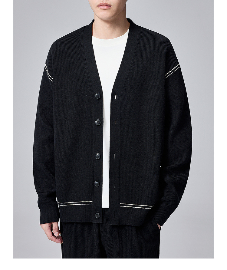 [89 Yuan] Momoike 스트라이프 대비 컬러 니트 카디건 남성 700g Ingot Needle 남성 스웨터 재킷 20752
