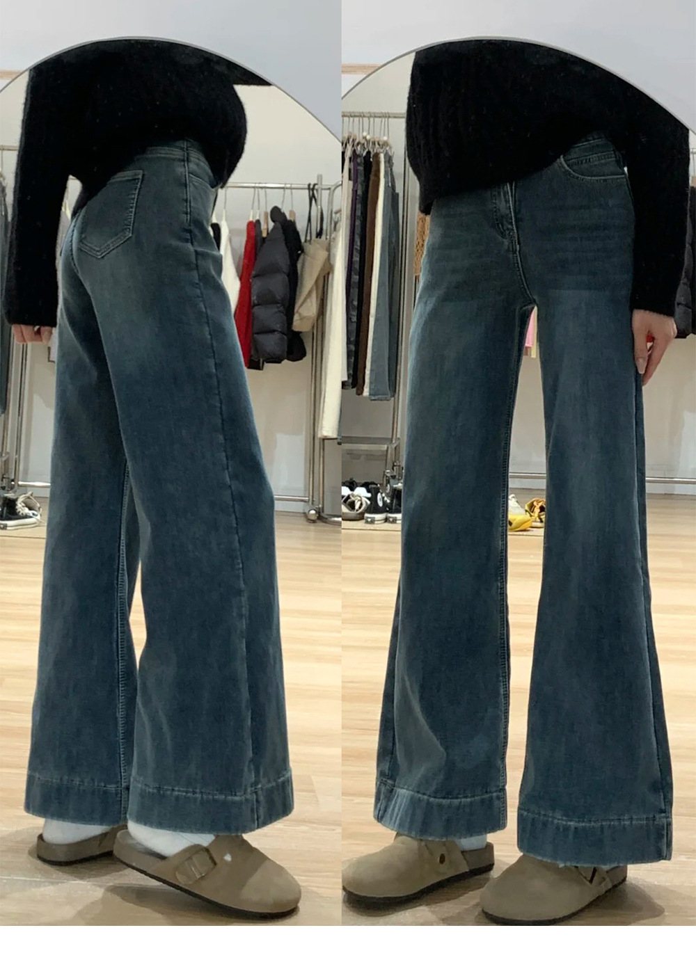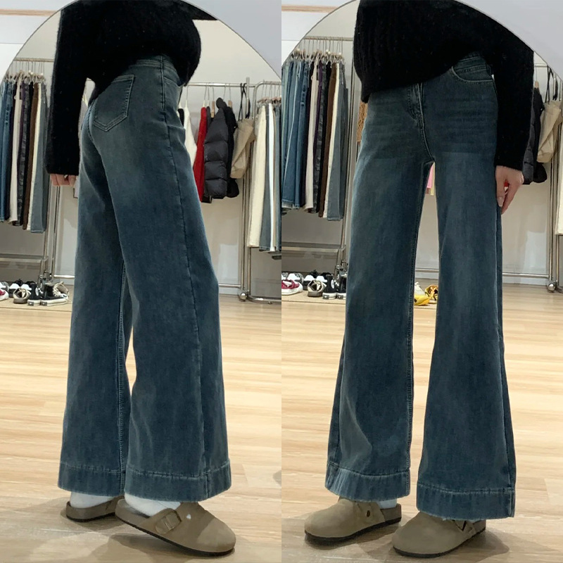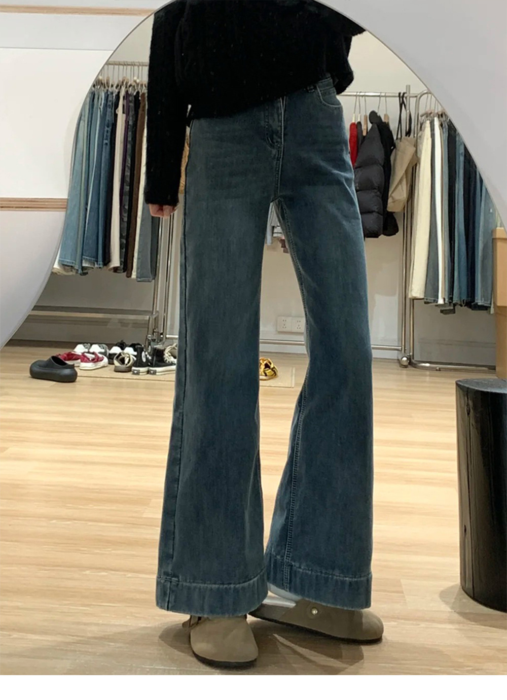 여성용 하이웨이스트 루즈핏 플레어 팬츠, 작은 키에도 잘 어울리는 라인형 체형을 위한 슬림한 스트레이트 데님 팬츠