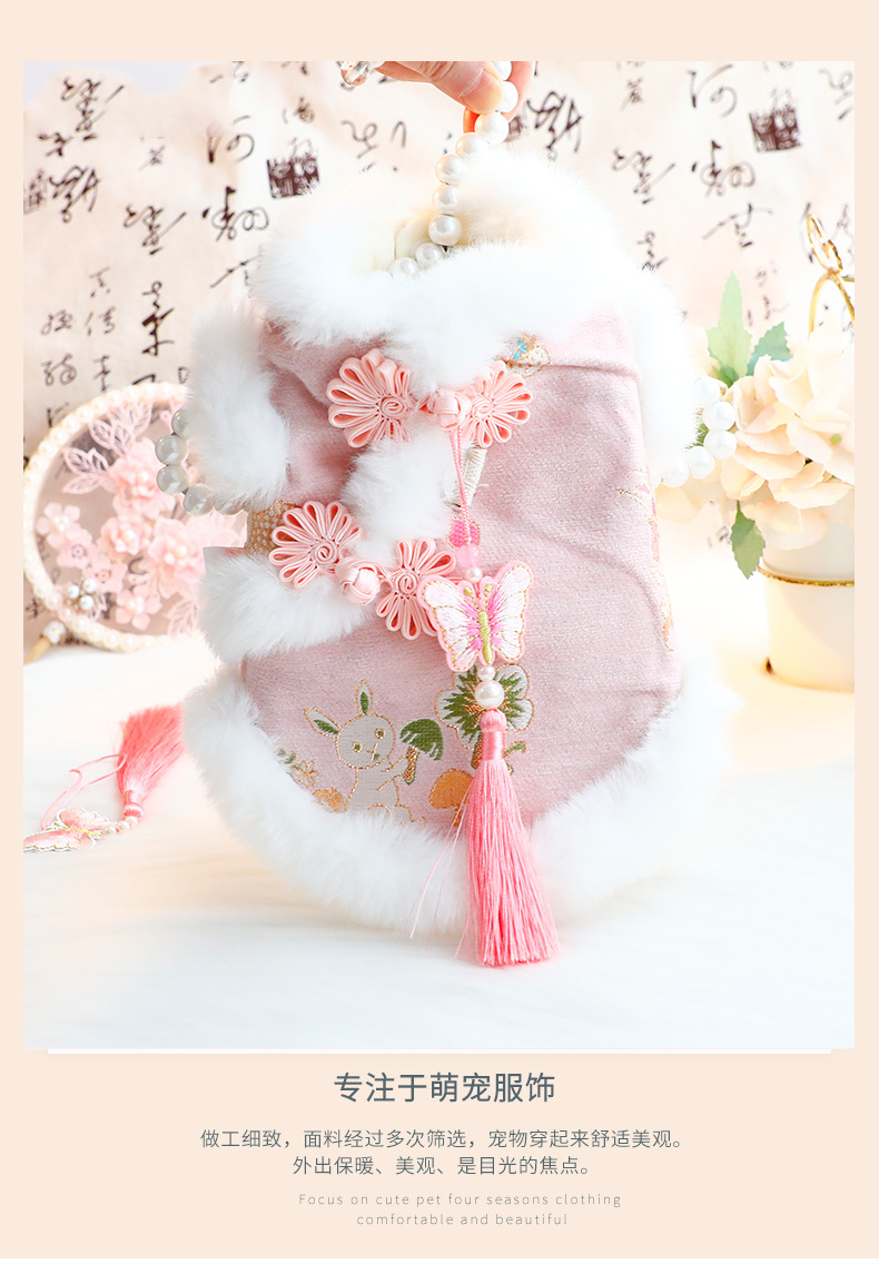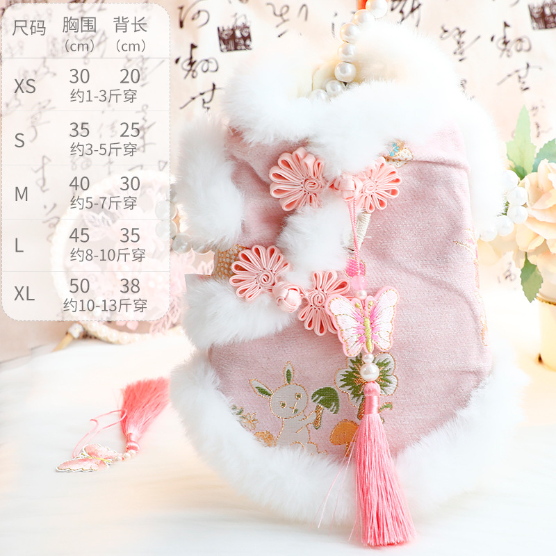 개 옷 가을과 겨울 두꺼운 고양이 공주 탕 세트 핑크 나비 견인 작은 개 테디 애완 동물 5856스토어 가기