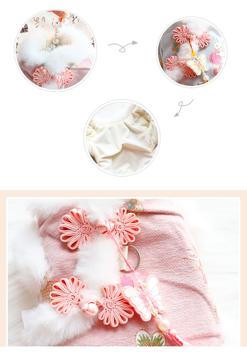개 옷 가을과 겨울 두꺼운 고양이 공주 탕 세트 핑크 나비 견인 작은 개 테디 애완 동물 5856
