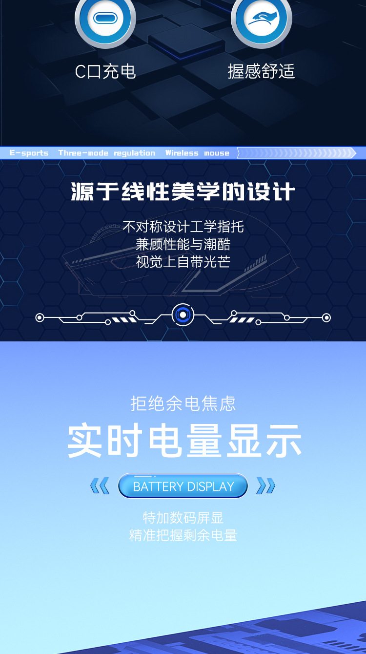 블루투스 디지털 디스플레이 마우스 3 모드 DPI 3 단계 조정 typec 인터페이스 라디오 경쟁 게임 사무실 배터리