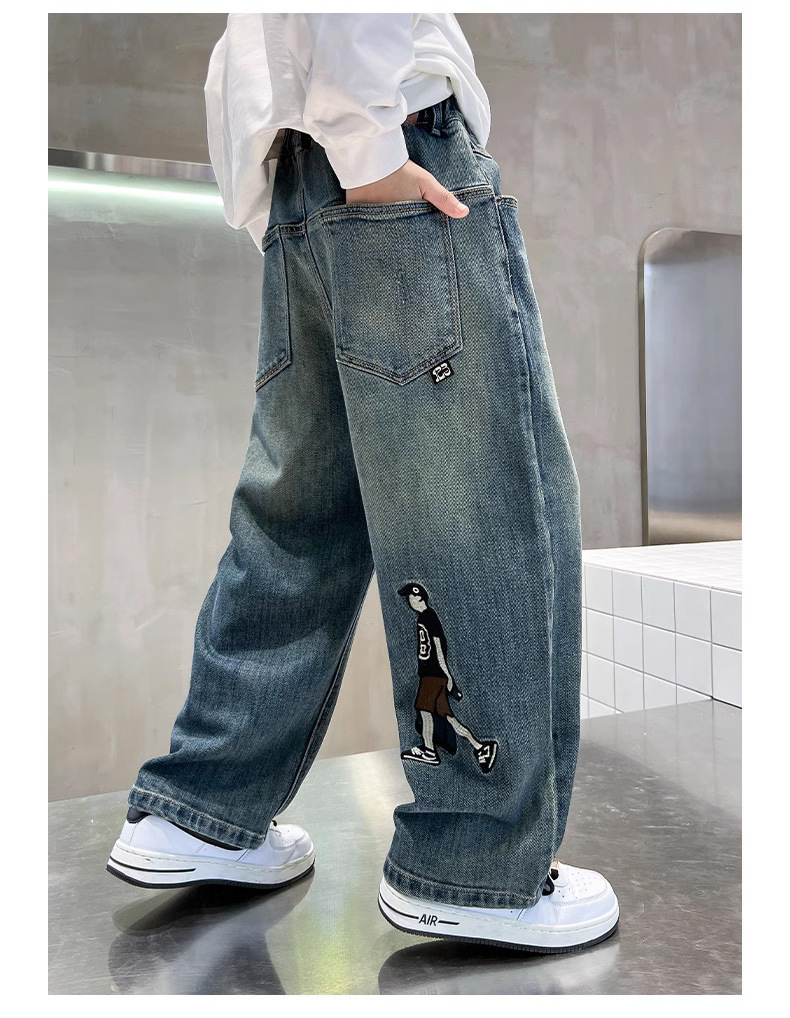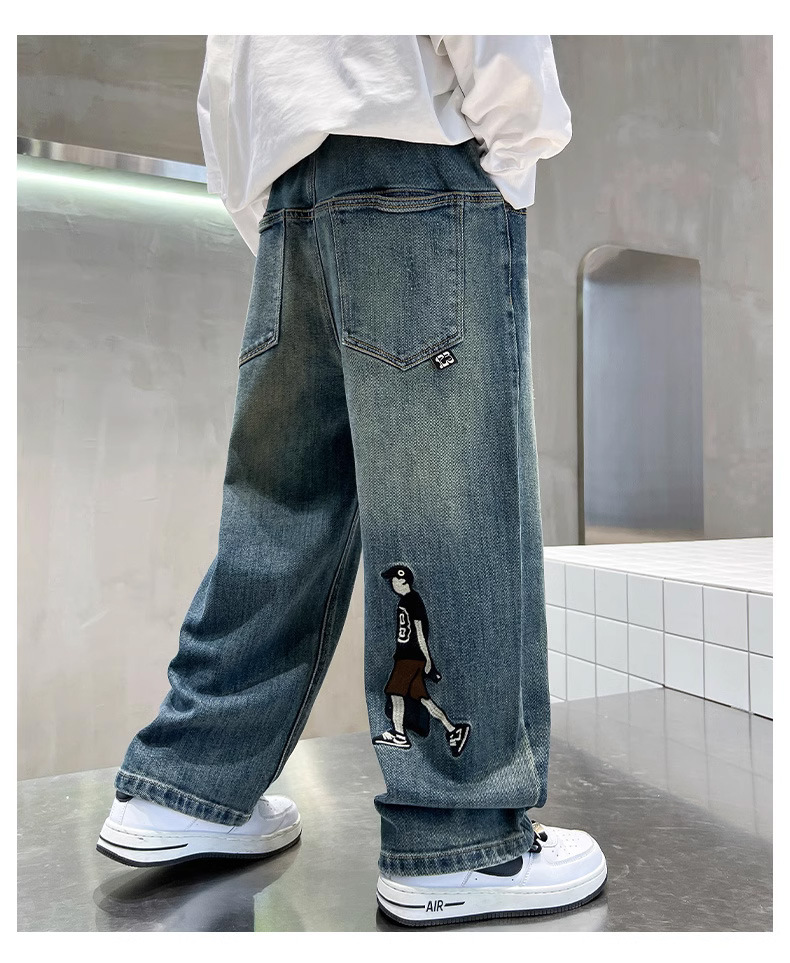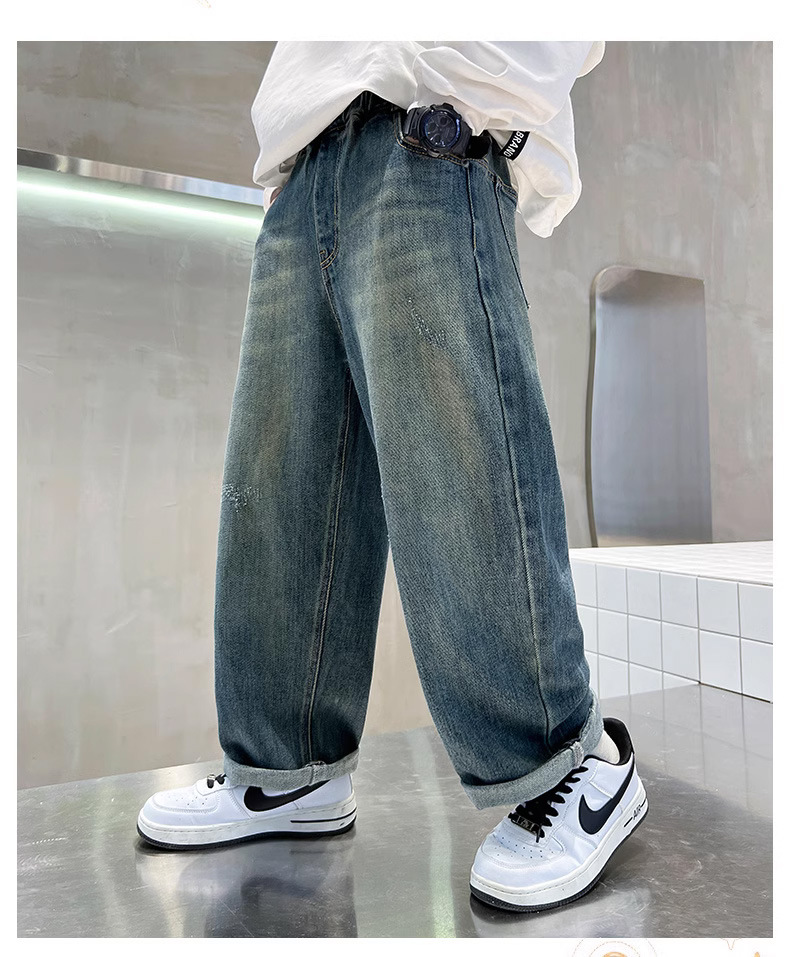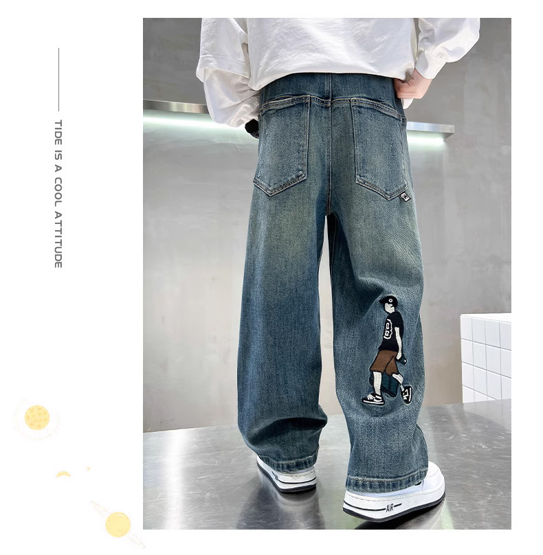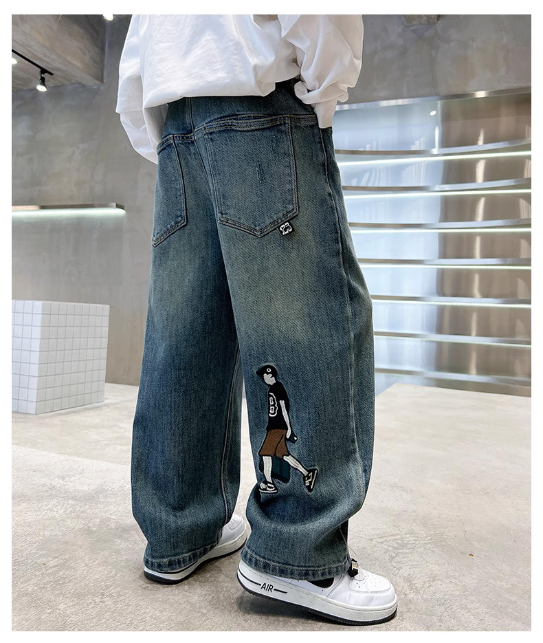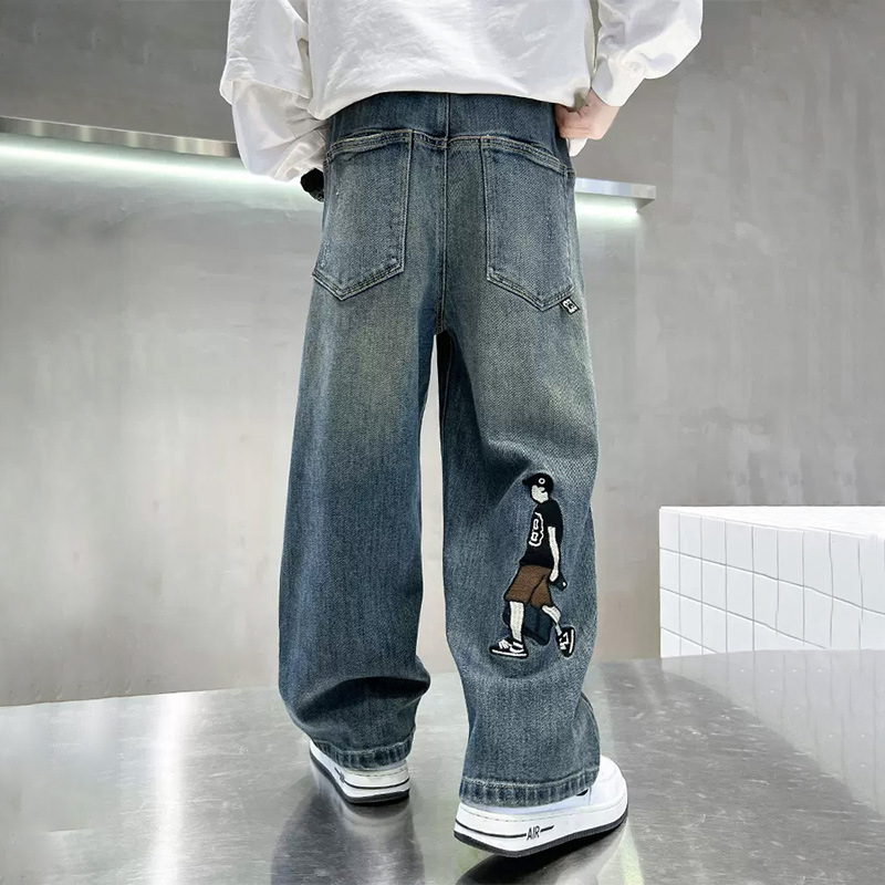 소년 바지 봄과 가을 2024 새로운 어린이 청바지 캐주얼 가을 큰 어린이 느슨한 소년 바지 학생스토어 가기
