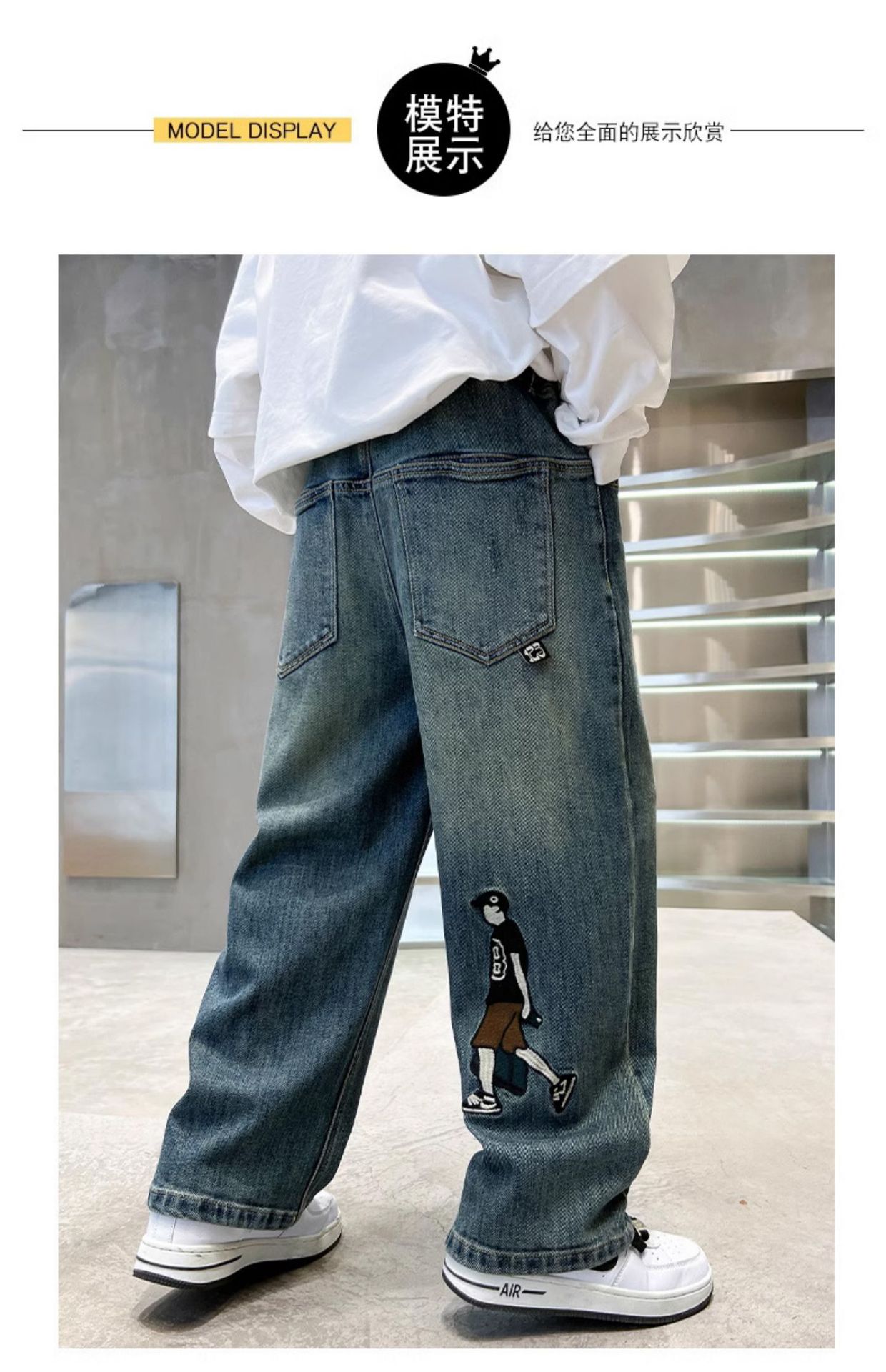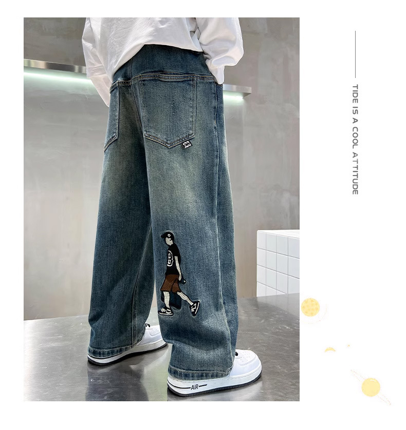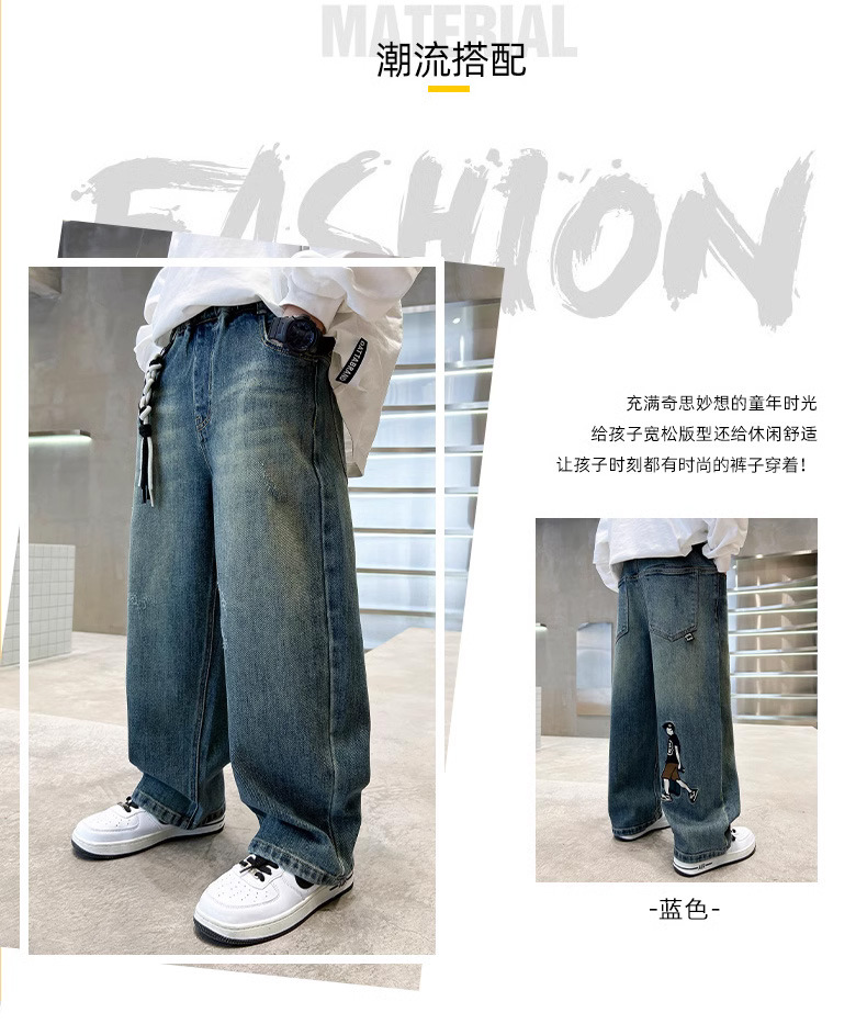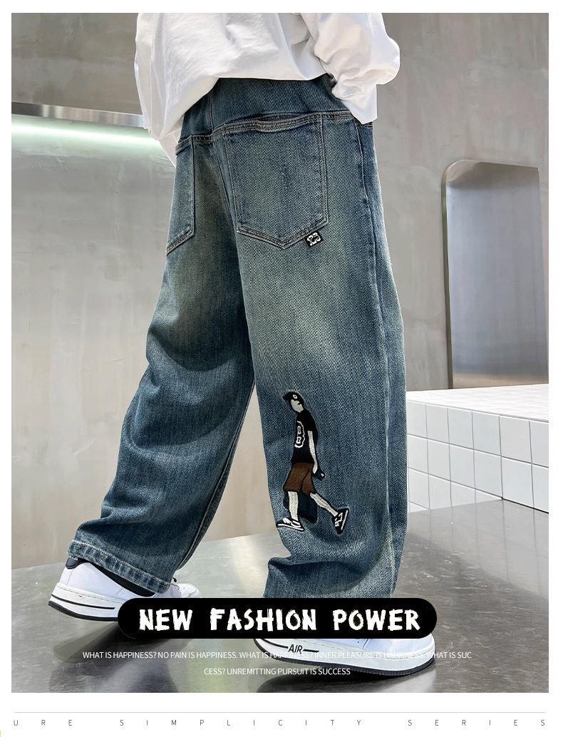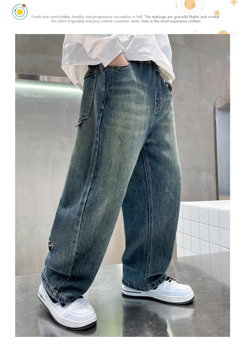 소년 바지 봄과 가을 2024 새로운 어린이 청바지 캐주얼 가을 큰 어린이 느슨한 소년 바지 학생스토어 가기