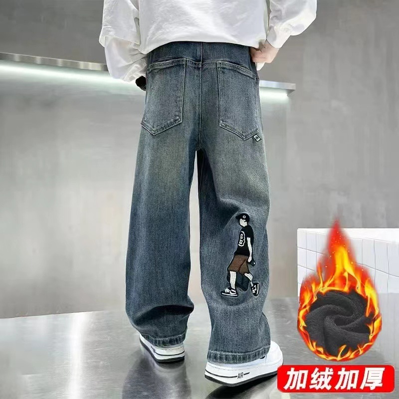 소년 바지 봄과 가을 2024 새로운 어린이 청바지 캐주얼 가을 큰 어린이 느슨한 소년 바지 학생