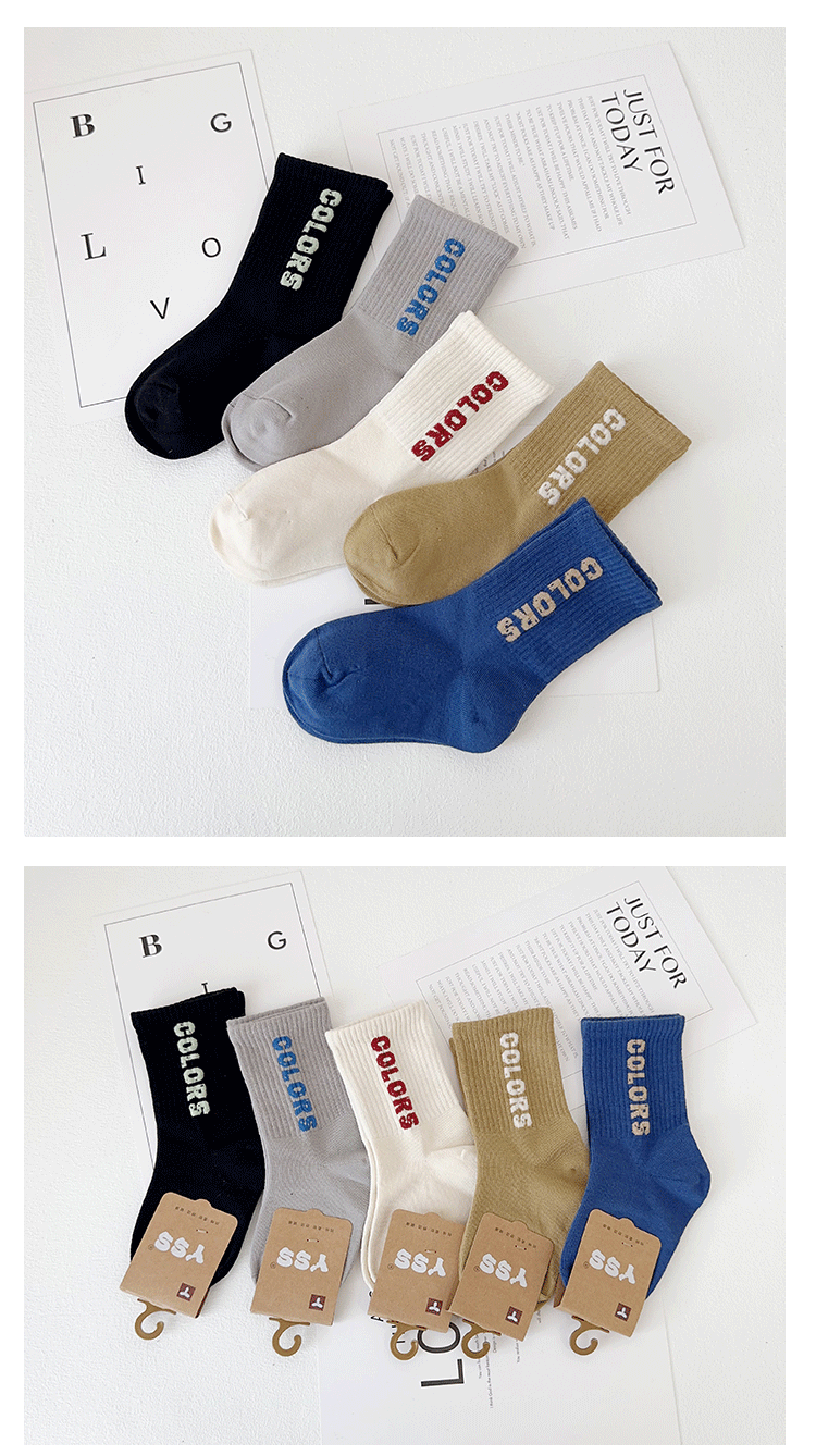 Yi Pair 어린이 양말 가을과 겨울 새로운 한국식 편지 중간 길이의 양말 빗 코튼 보이즈 스포츠 양말 큰 어린이 유행 양말스토어 가기