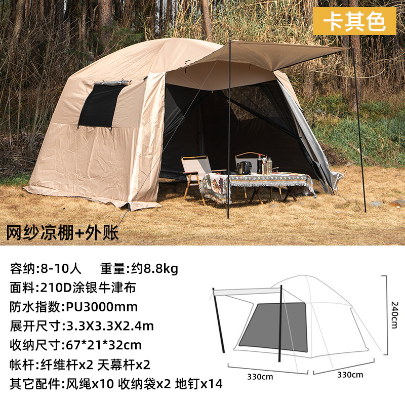 • 모기방지 메쉬 퍼걸러 내부 텐트 + 외부 텐트 3.3*3.3* 2.4m (8-12명)