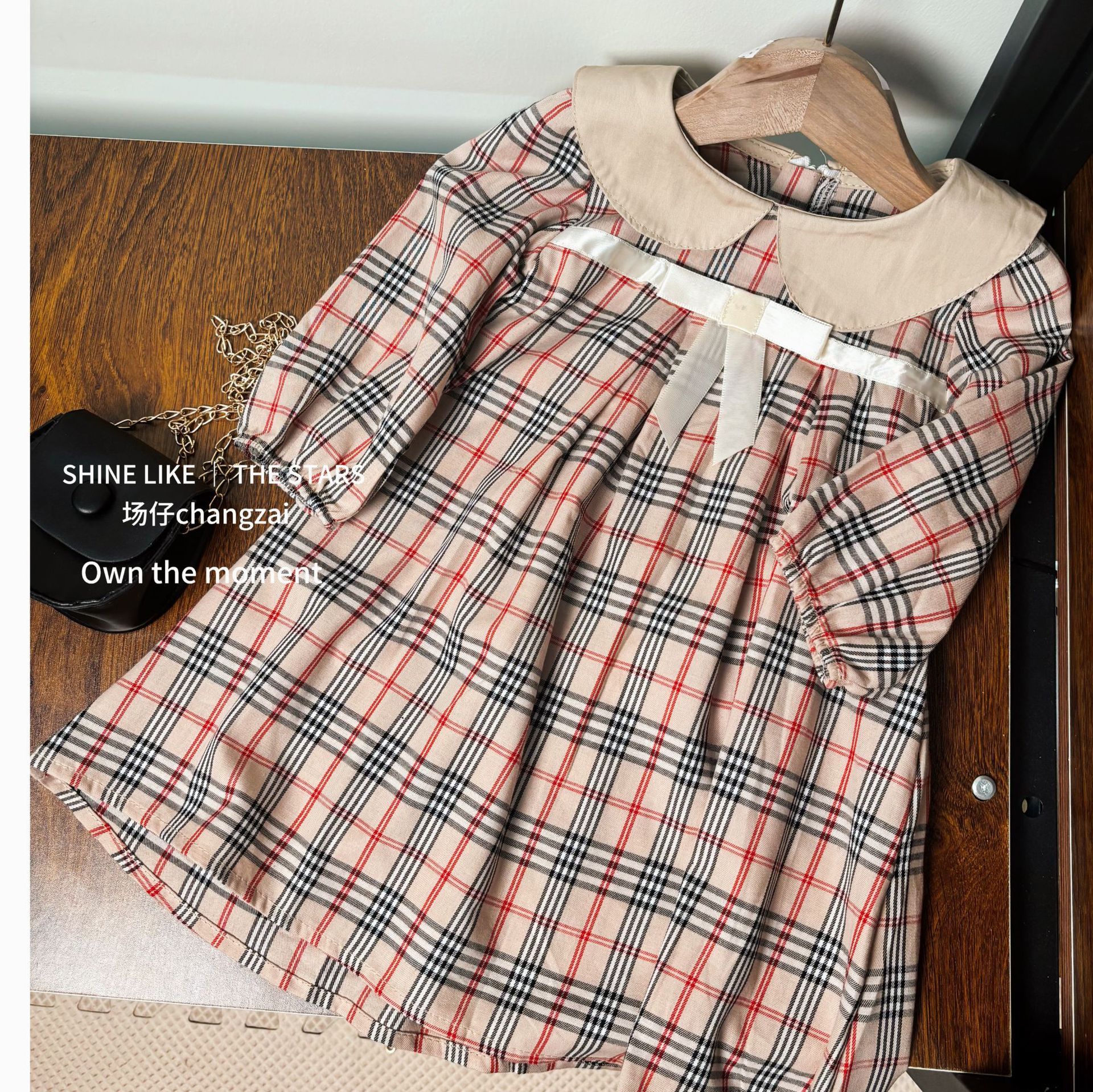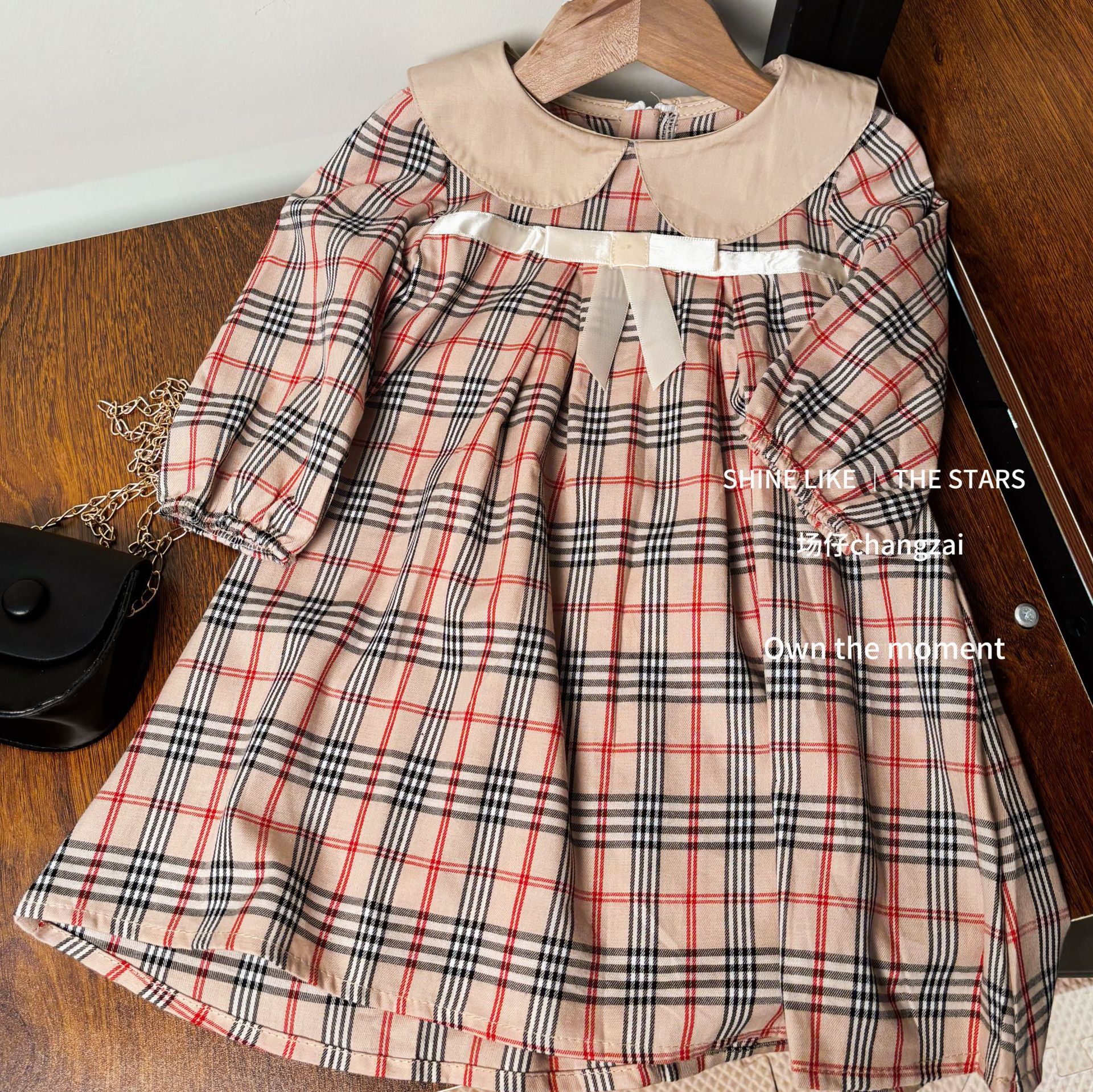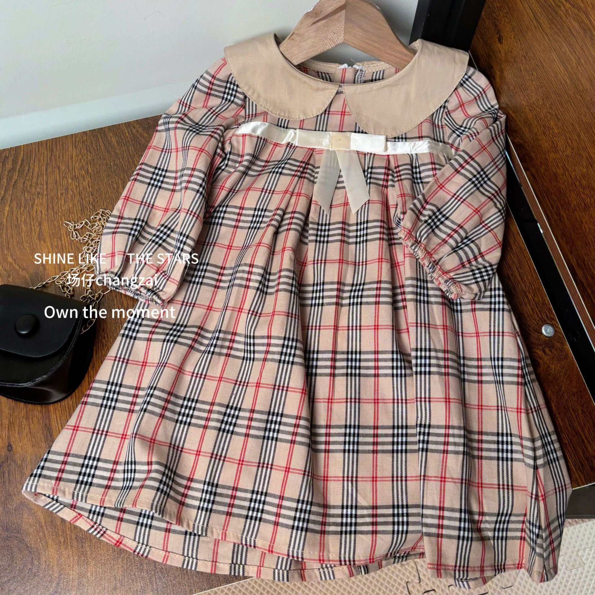 소녀 가을 격자 무늬 원피스 2024 봄과 가을 새로운 아기 서양 스타일 가을 어린이 인형 목걸이 공주 치마스토어 가기