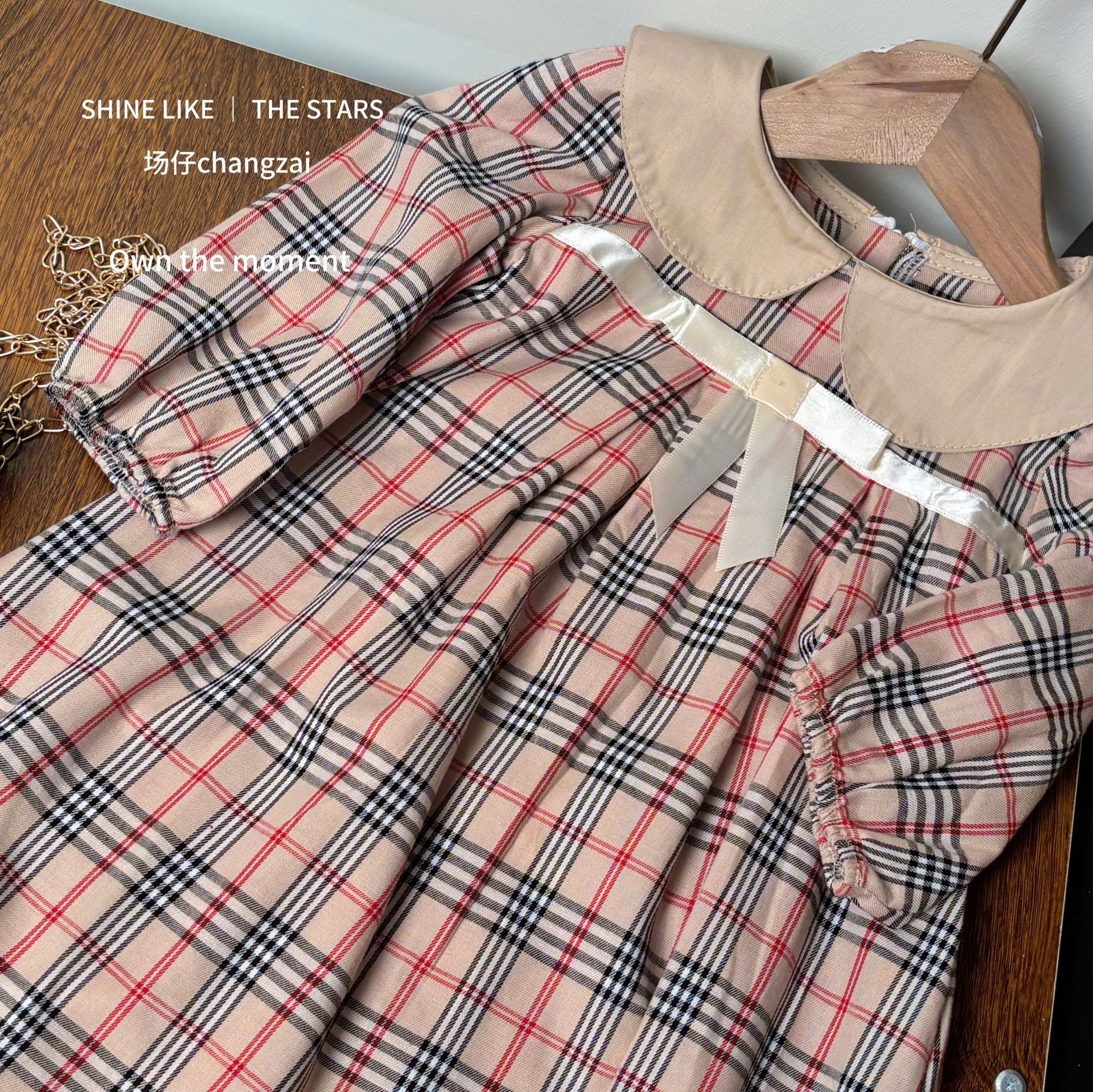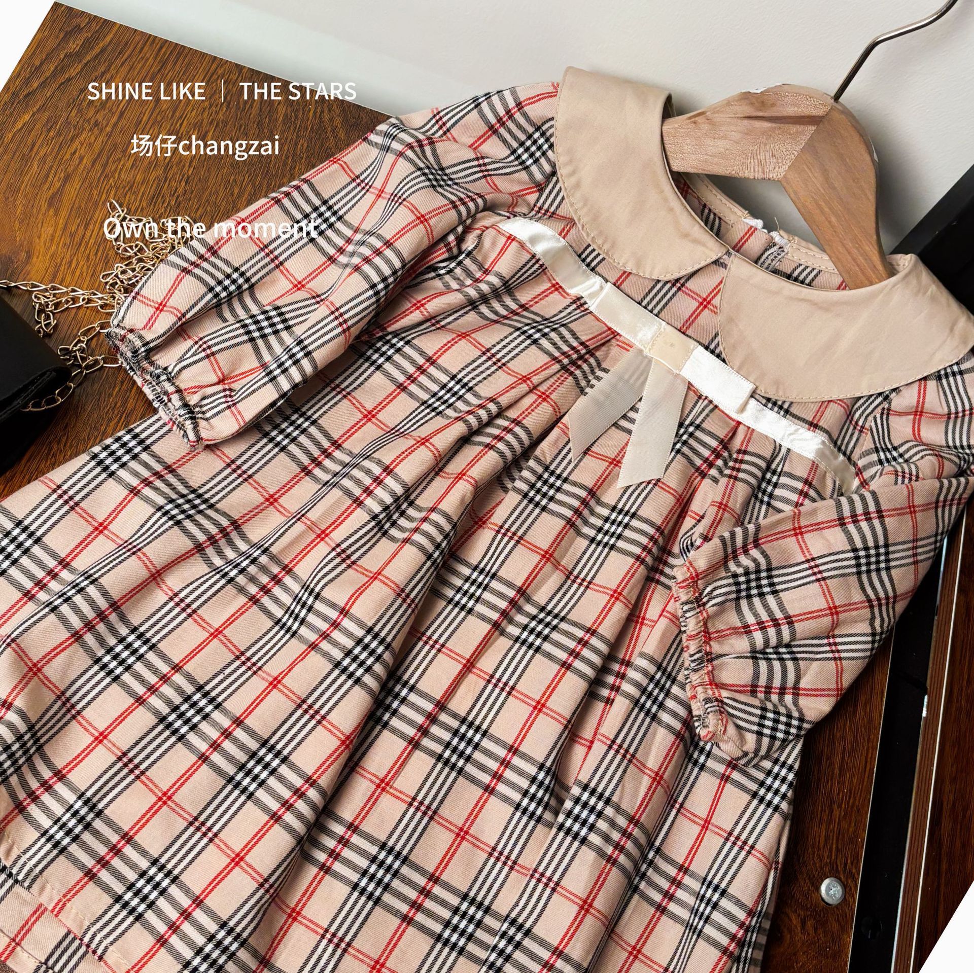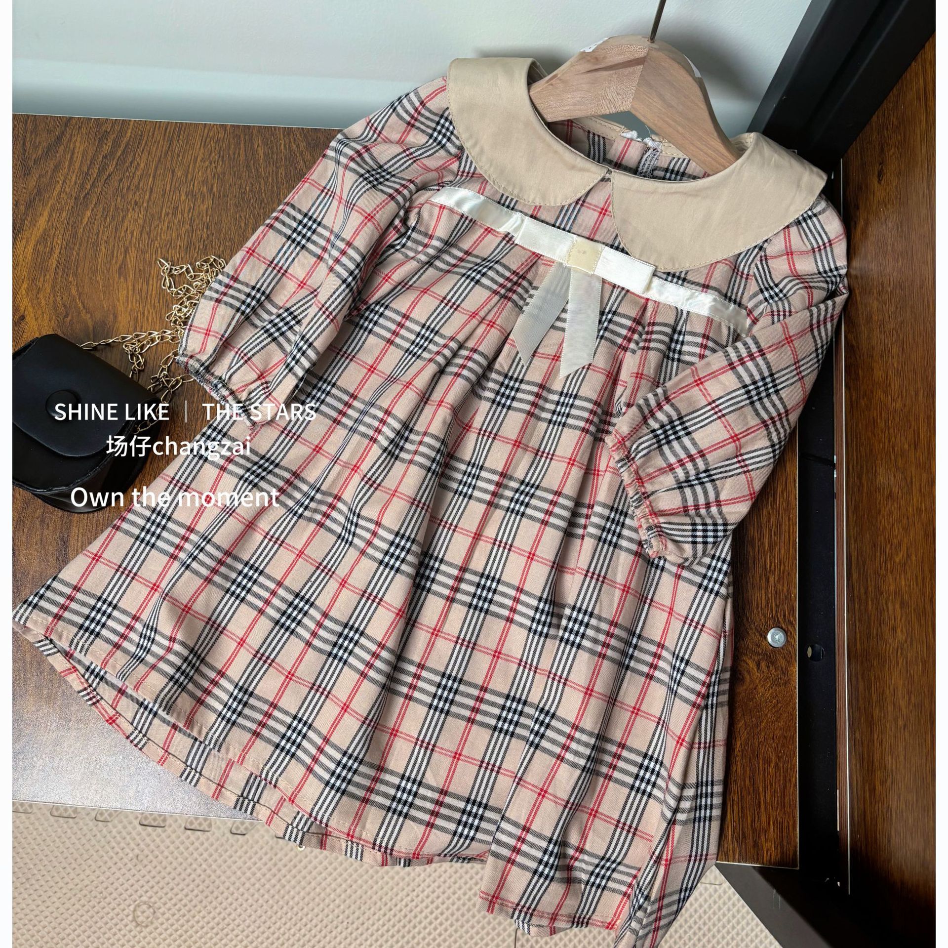 소녀 가을 격자 무늬 원피스 2024 봄과 가을 새로운 아기 서양 스타일 가을 어린이 인형 목걸이 공주 치마스토어 가기