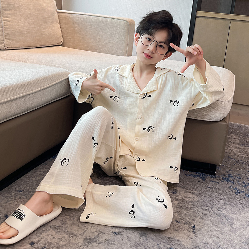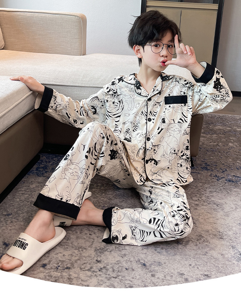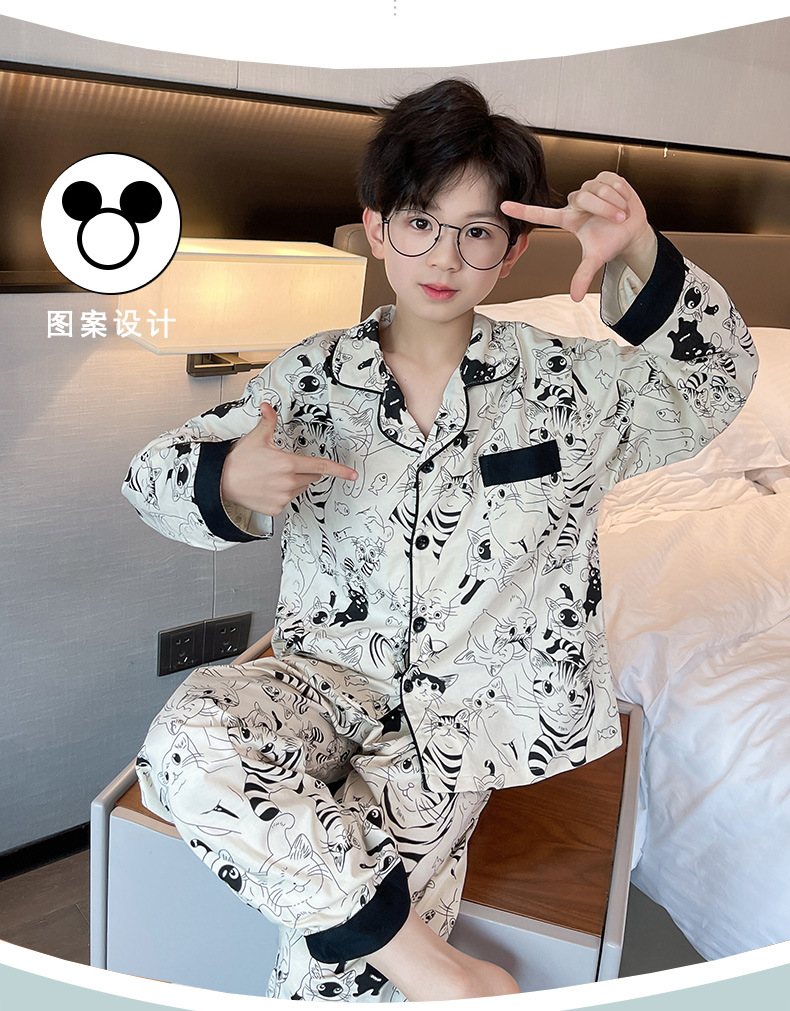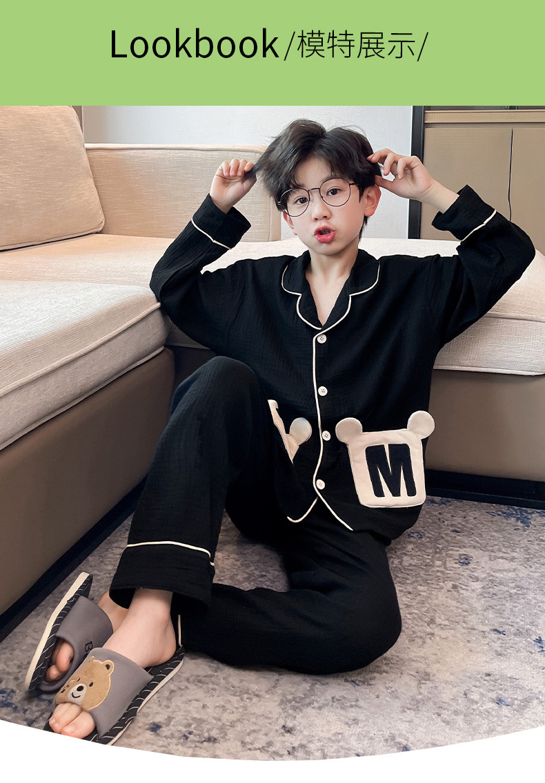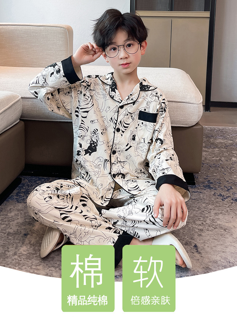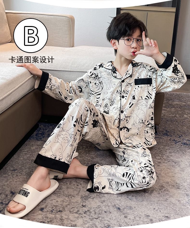 남아 순면 잠옷 봄 가을 긴팔 2025 신상 멋진 아동 홈웨어 남자아이 봄옷 큰아이 봄옷