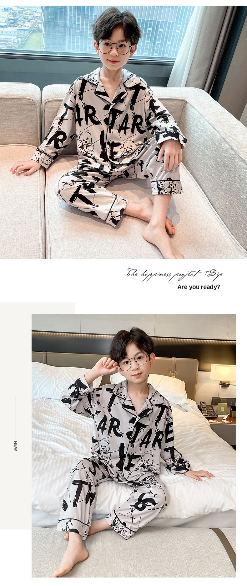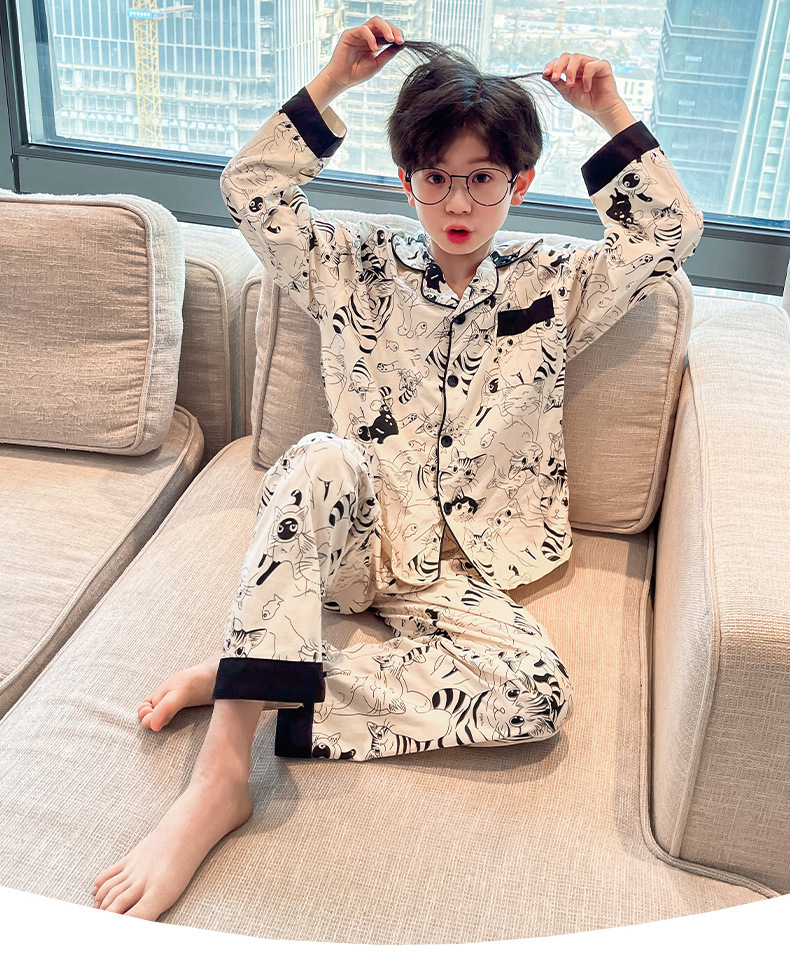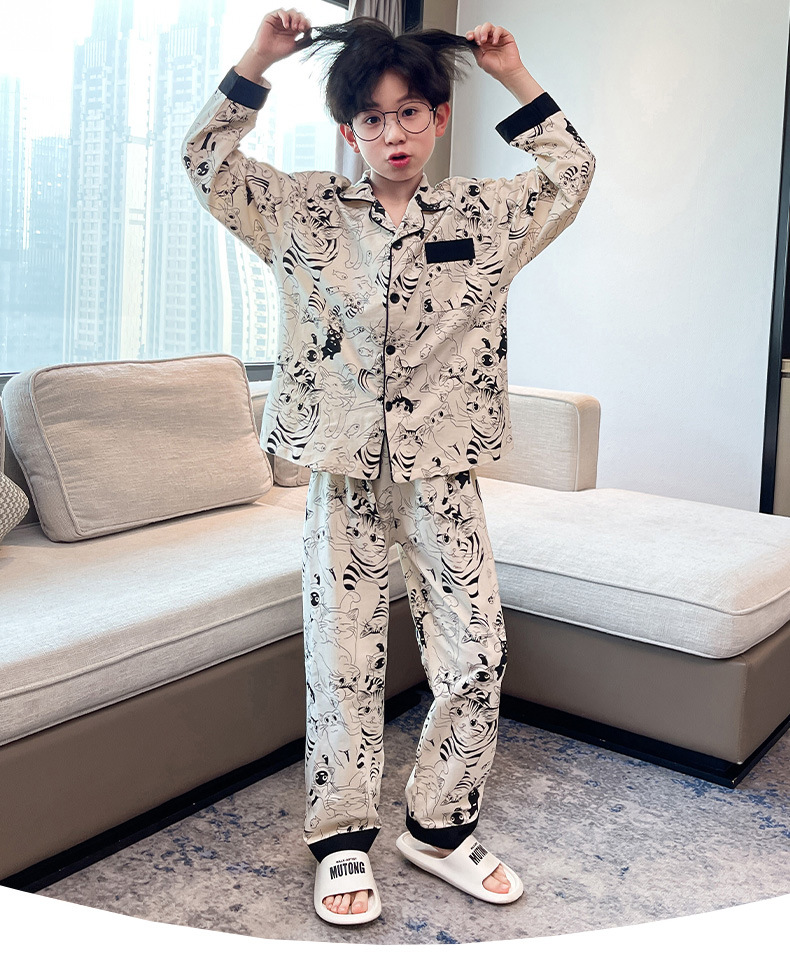 남아 순면 잠옷 봄 가을 긴팔 2025 신상 멋진 아동 홈웨어 남자아이 봄옷 큰아이 봄옷스토어 가기