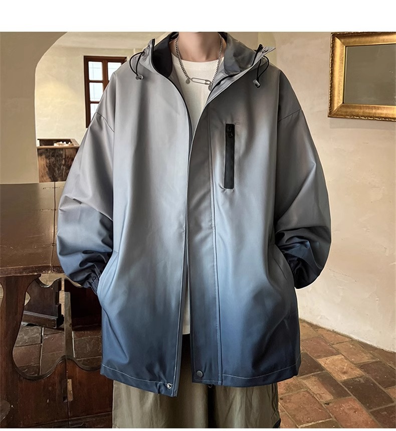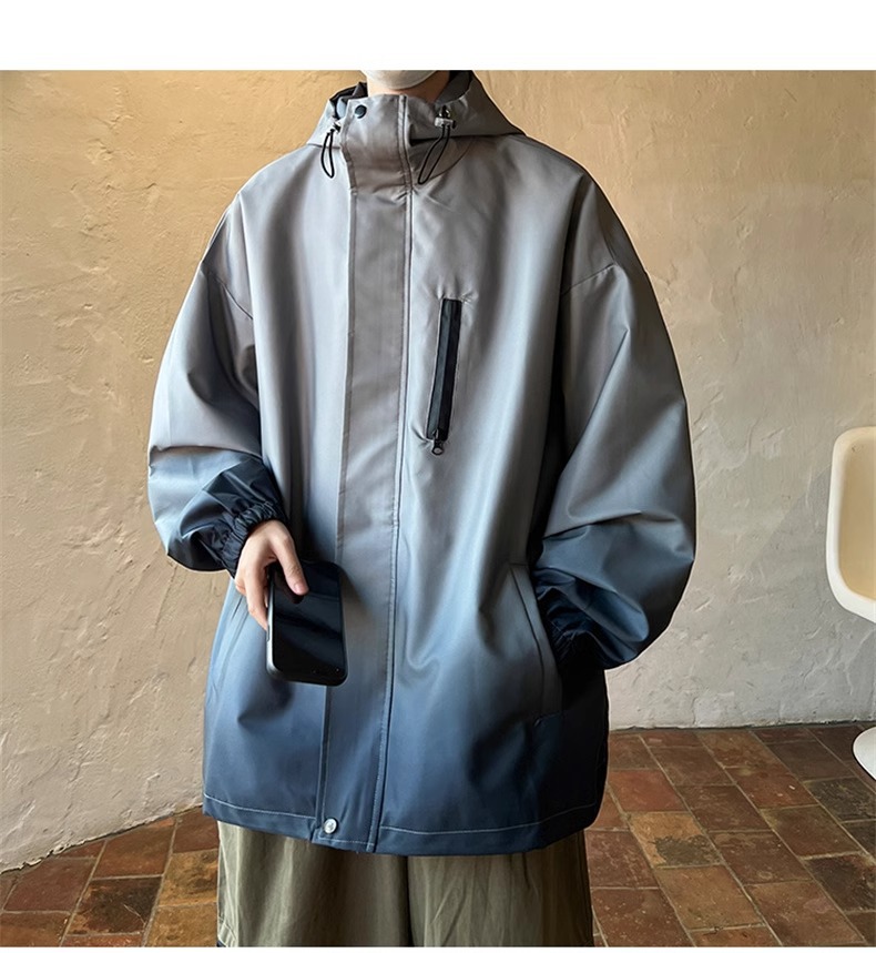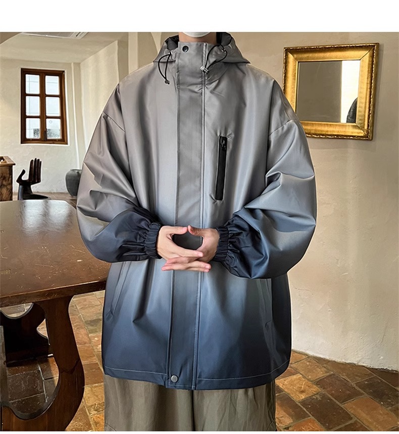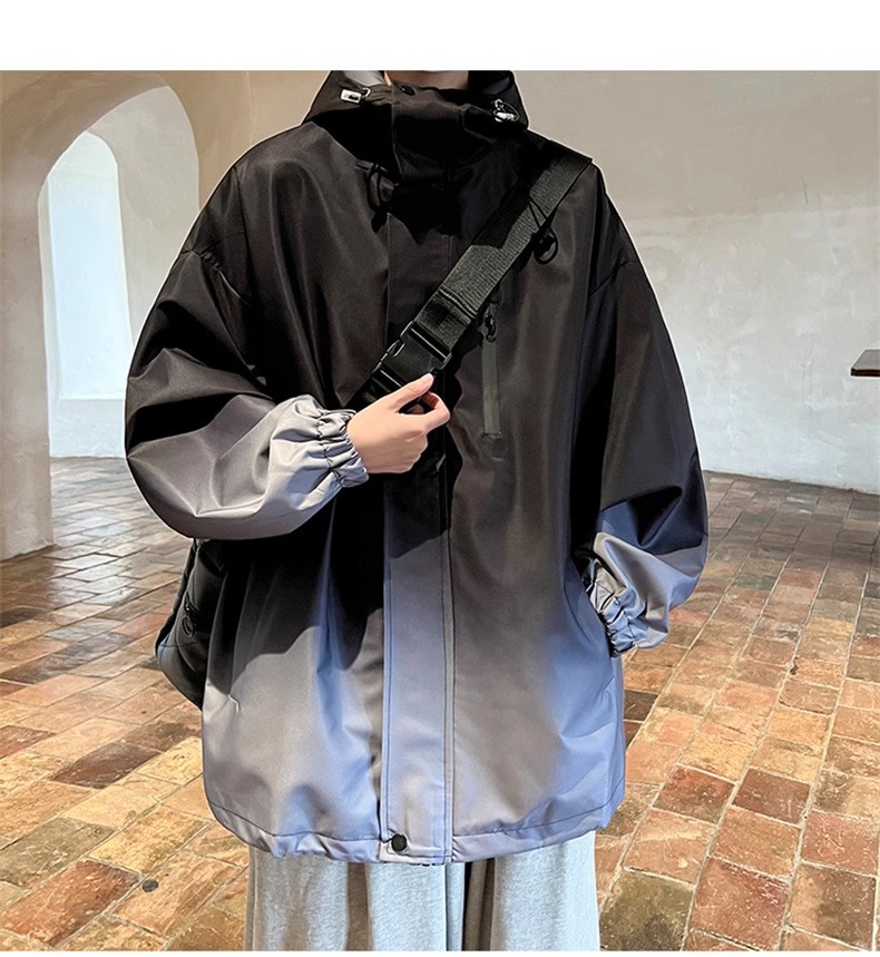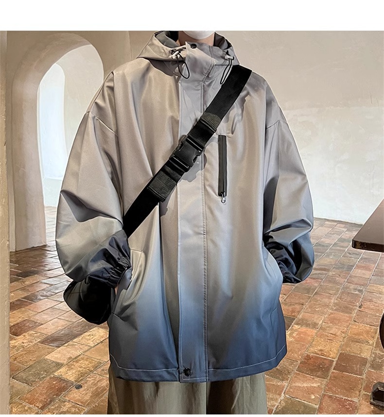 NASA 그라디언트 그레이 재킷 남자의 봄과 가을 2024 새로운 툴링 헤비 후드 보이즈 방수스토어 가기