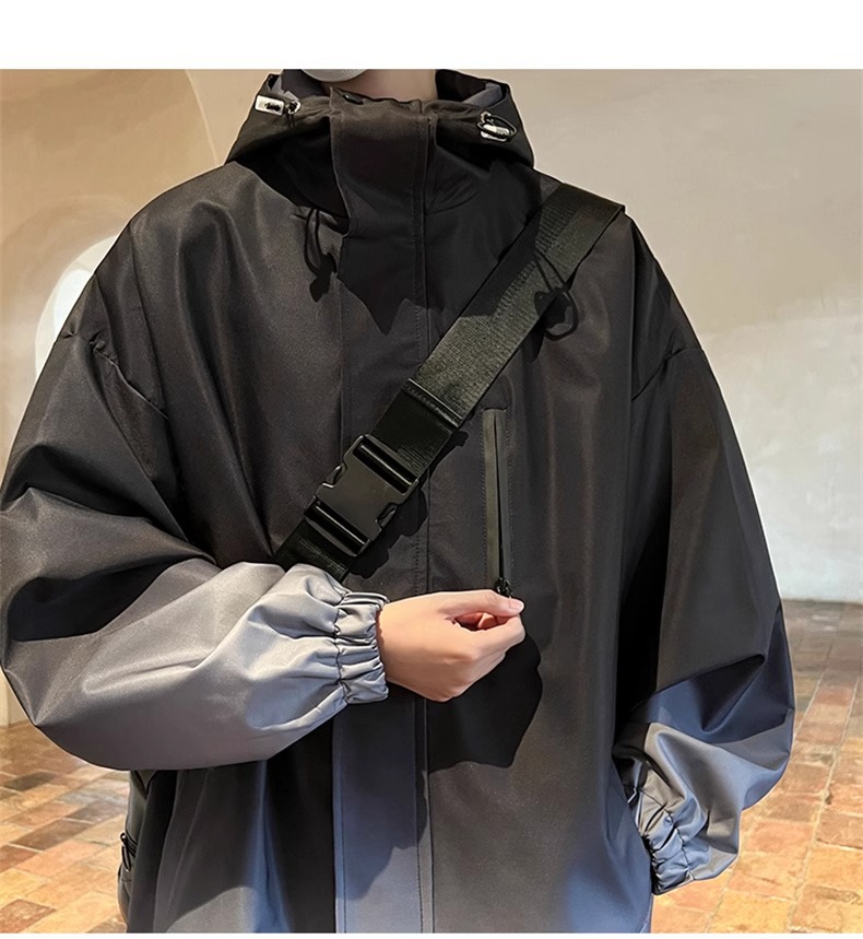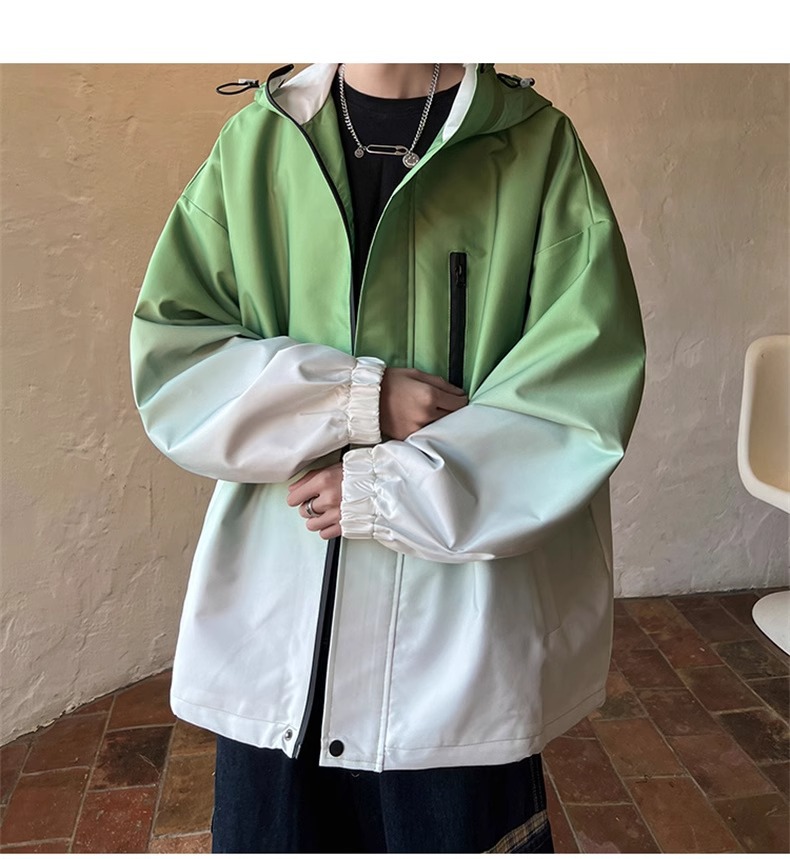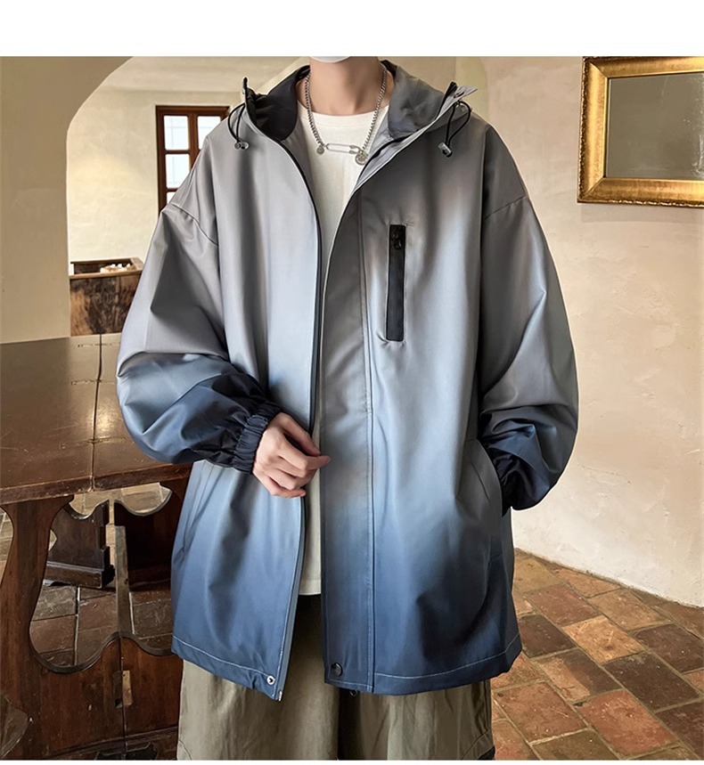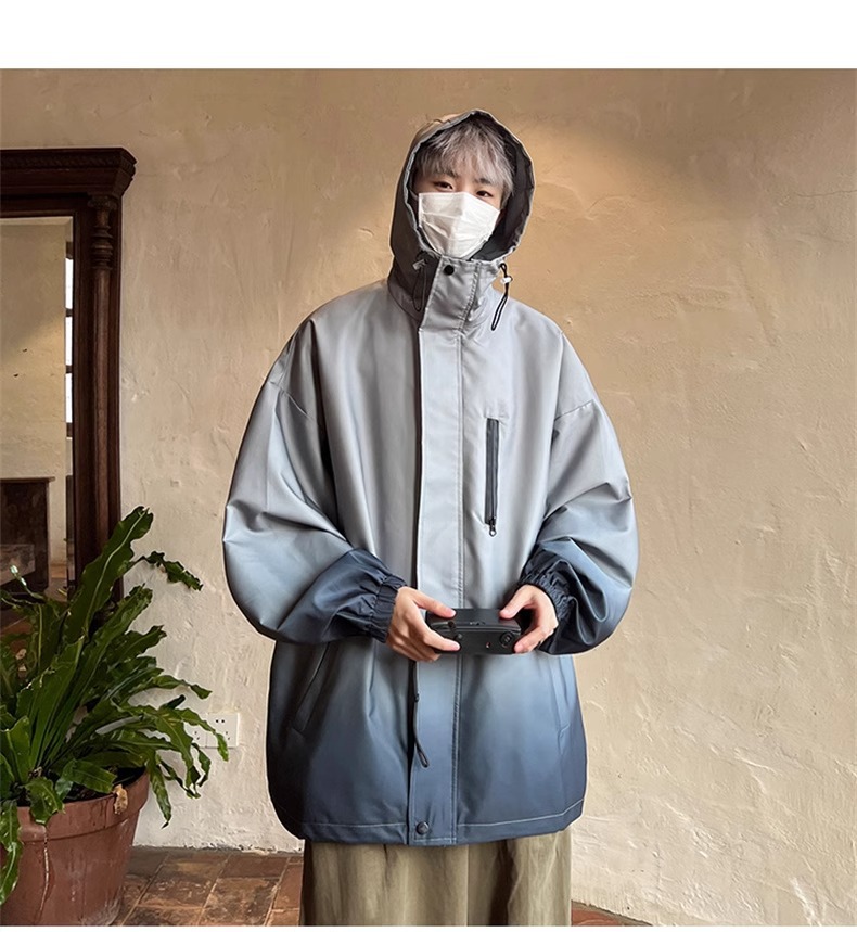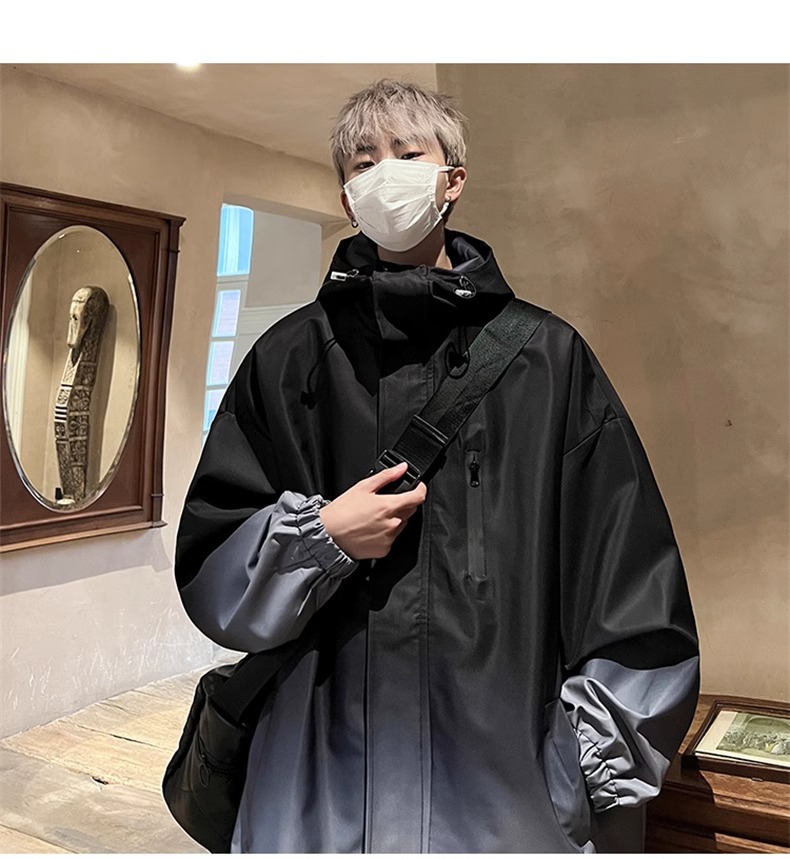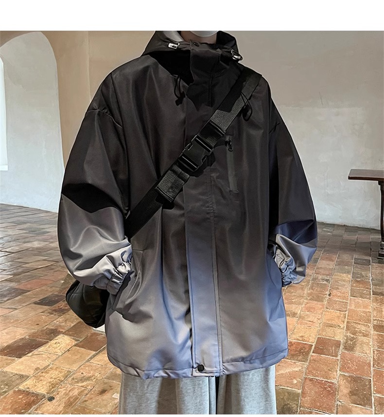 NASA 그라디언트 그레이 재킷 남자의 봄과 가을 2024 새로운 툴링 헤비 후드 보이즈 방수스토어 가기
