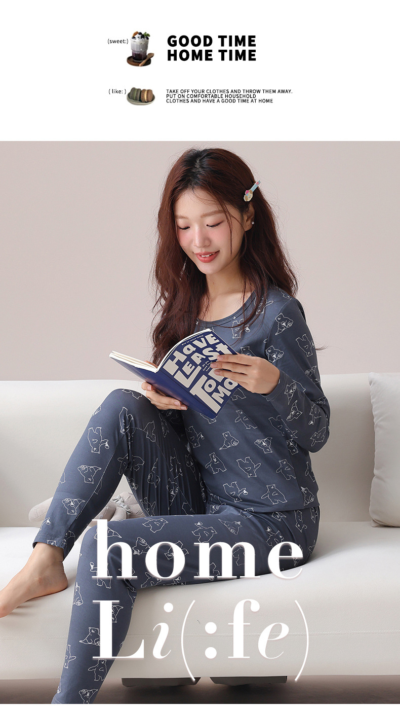 재고 귀여운 모조 면 프린트 바닥 셔츠 가을 여성 세트 작은 신선한 가을 옷 가을 바지 겨울 열 속옷 공장스토어 가기