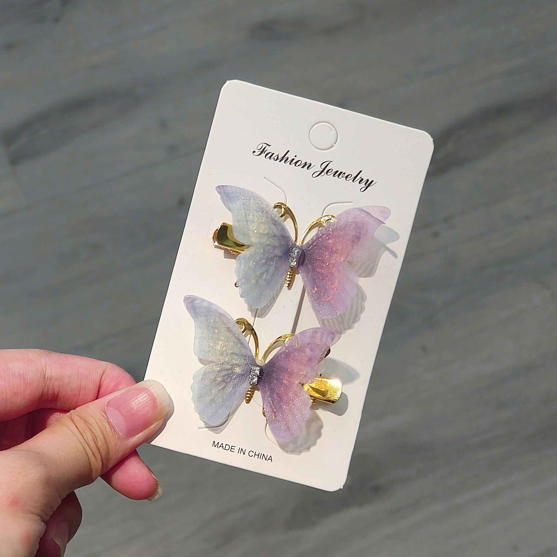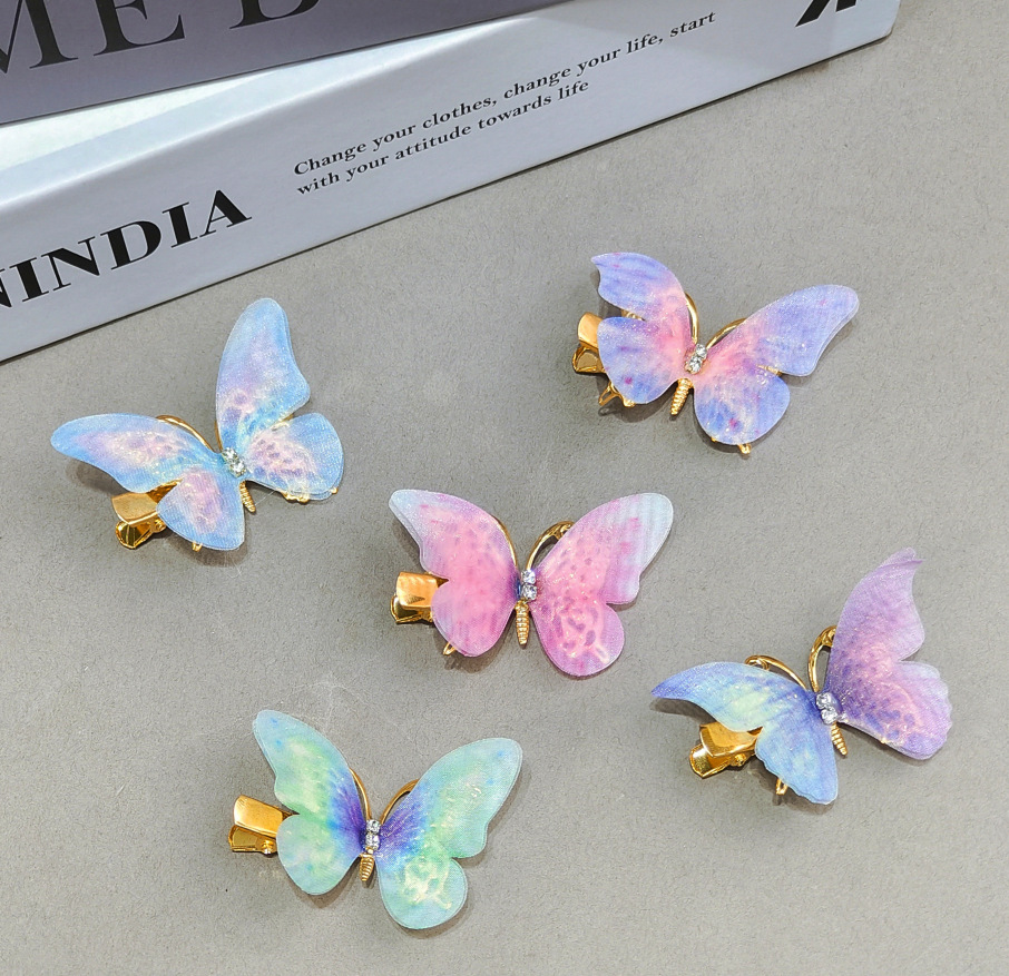 어린이 나비 머리핀 메쉬 합금 귀여운 그라디언트 슈퍼 요정 한후 헤어 액세서리 덕빌 클립 원 위안 헤어핀 도매