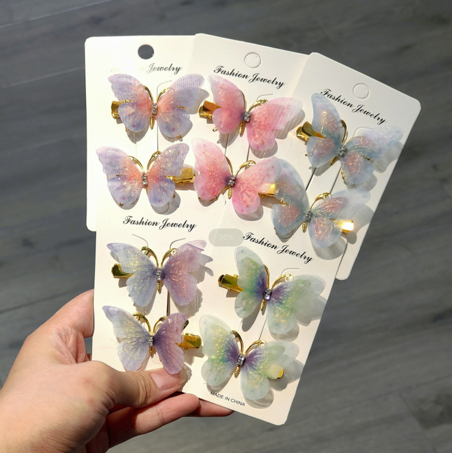 어린이 나비 머리핀 메쉬 합금 귀여운 그라디언트 슈퍼 요정 한후 헤어 액세서리 덕빌 클립 원 위안 헤어핀 도매스토어 가기