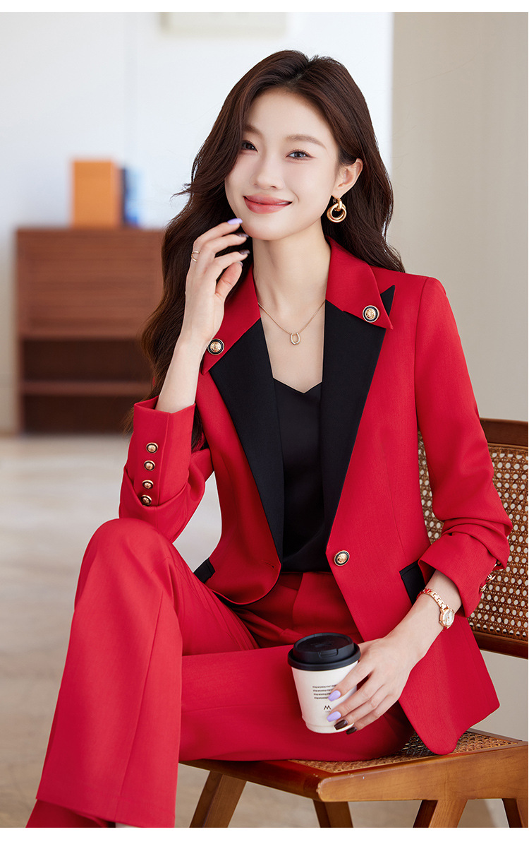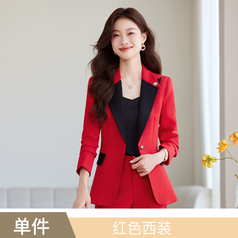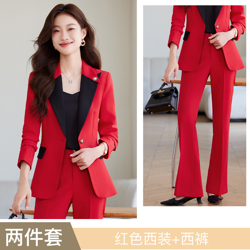레드 세트 세트 여성의 2024 봄과 가을 신사업 착용 기질 여신 팬 호스트 하이 엔드 세트 재킷스토어 가기