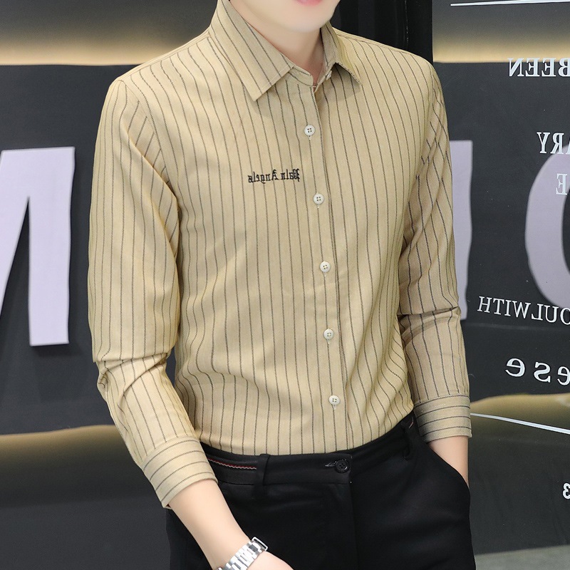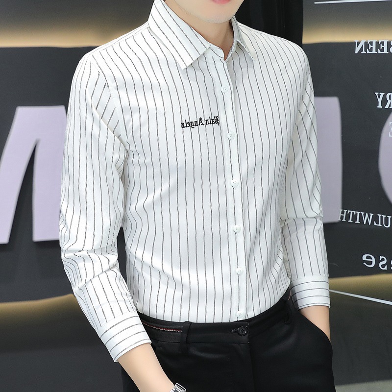 새로운 비 다림질 주름 방지 비즈니스 셔츠 남성 봄과 가을 하이 엔드 남성 줄무늬 슬림 핏 캐주얼 긴팔 셔츠스토어 가기