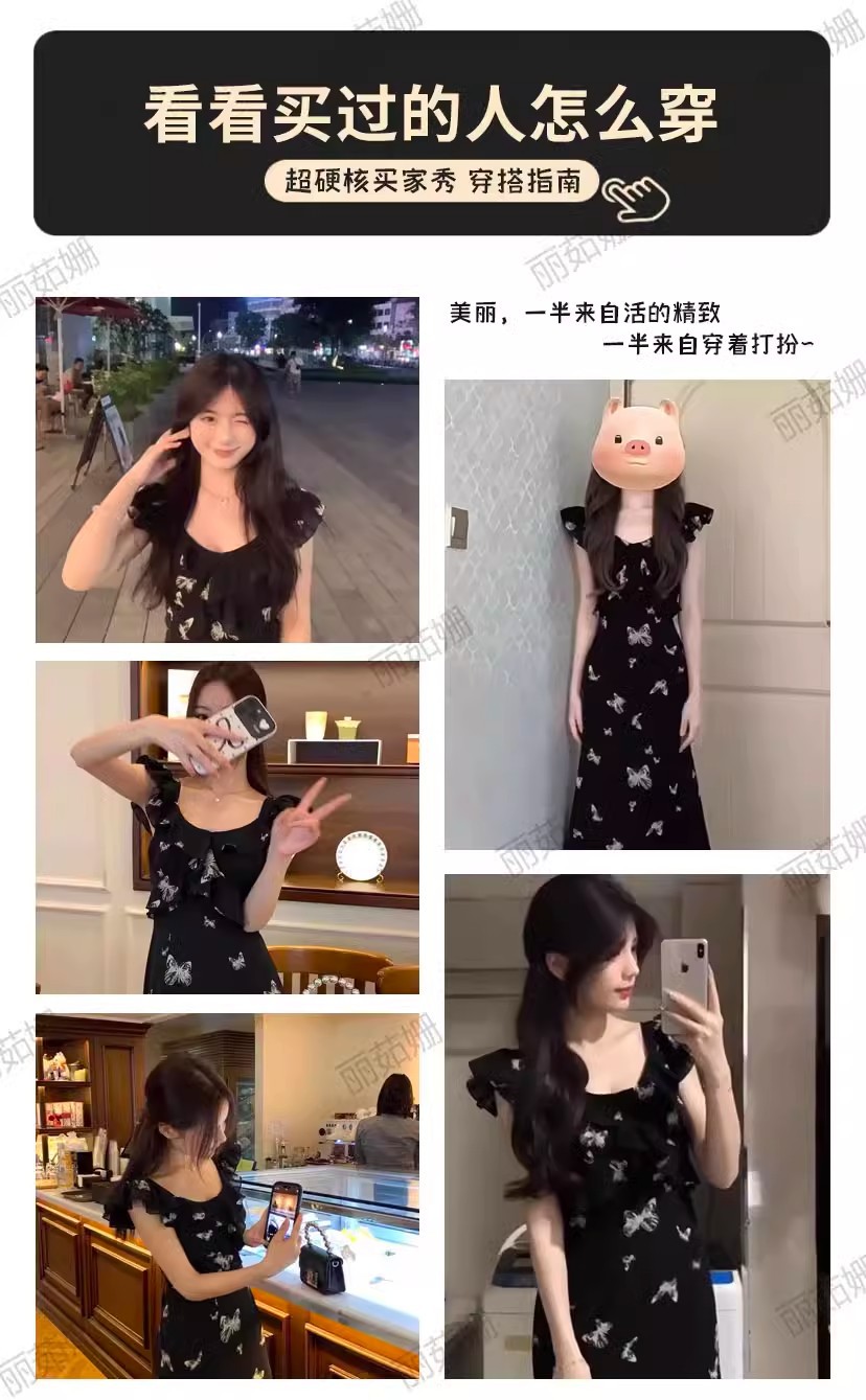 [더블 레이어 + 인테리어] 작은 비행 소매 나비 원피스 어린이 여름 프랑스 기질 아름다운 허리 길이스토어 가기