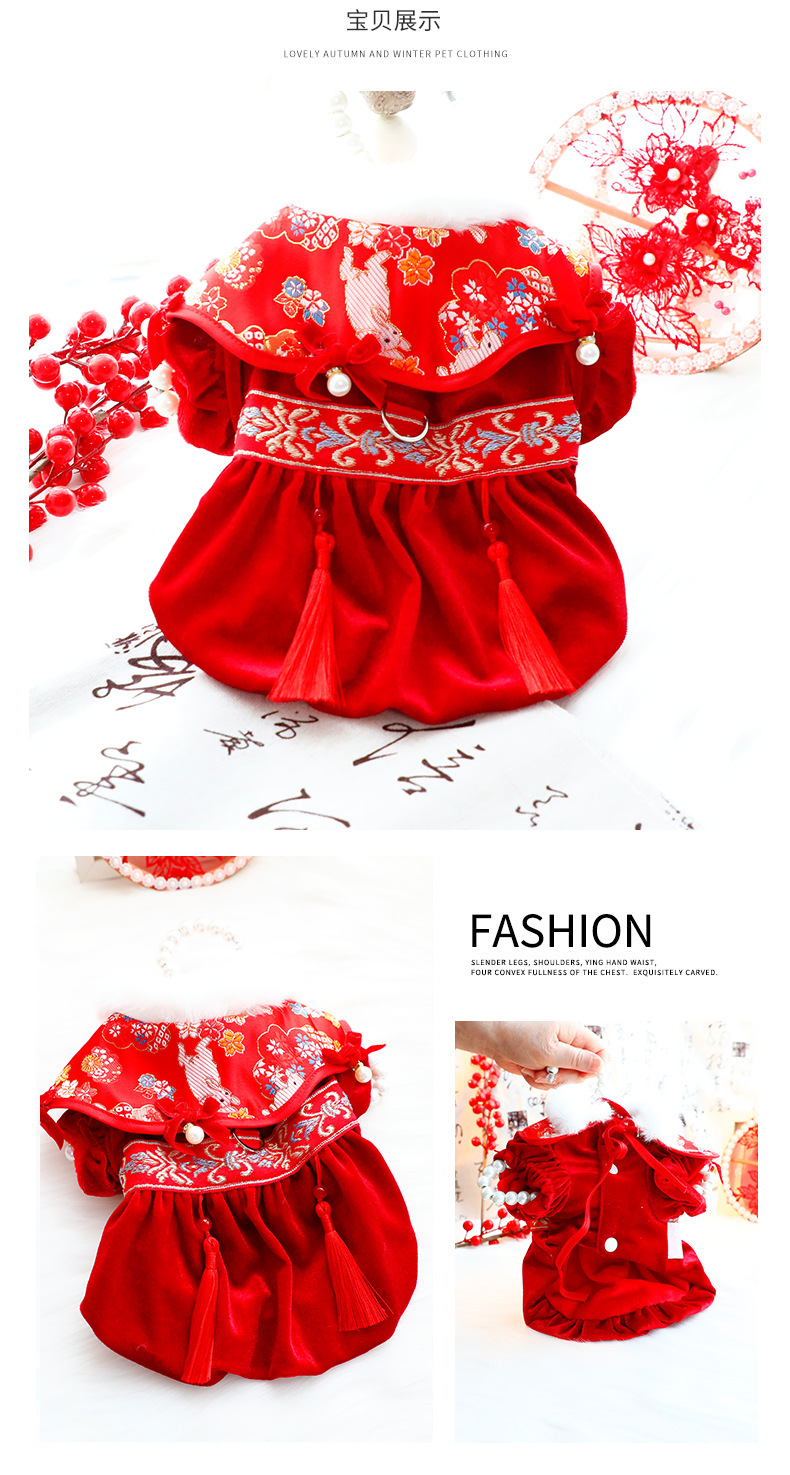 개 옷 가을과 겨울 두꺼운 고양이 공주 목도리 술 탕 세트 견인 작은 개 테디 애완 동물 5892스토어 가기