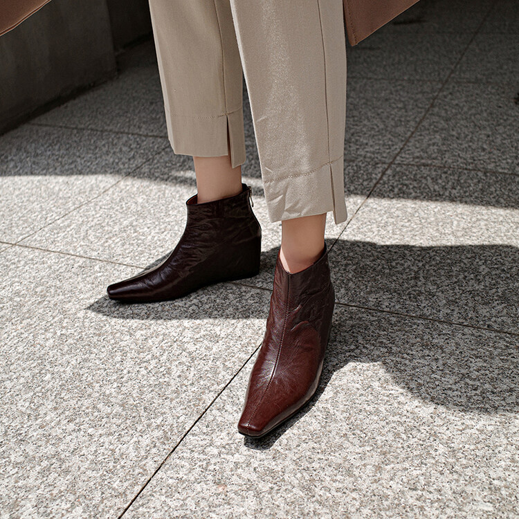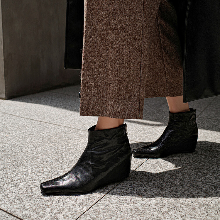 스퀘어 헤드 내부 높이 부츠 여성용 양가죽 및 알몸 부츠 2024 가을 및 겨울 새로운 하이힐 지퍼 여성용 쇼트 부츠 싱글 부츠