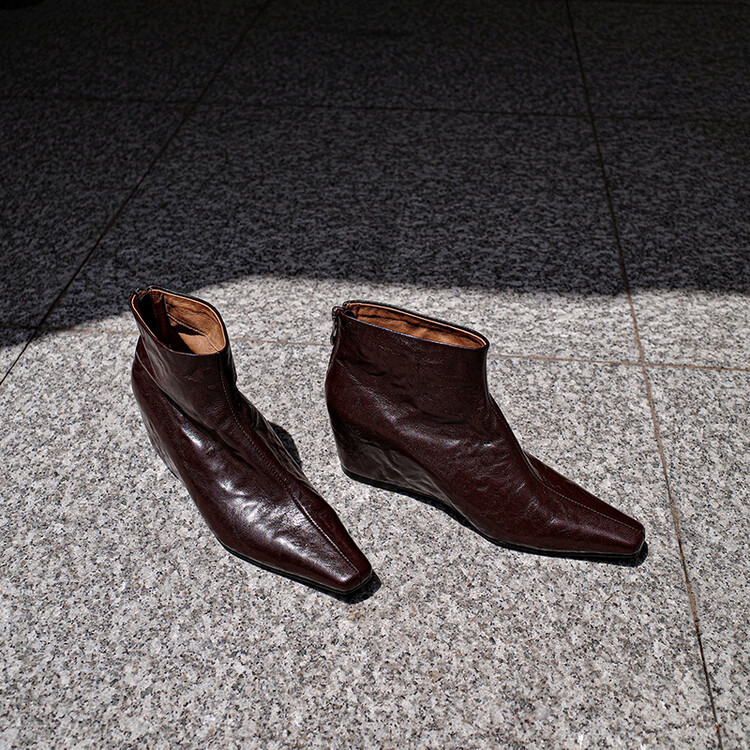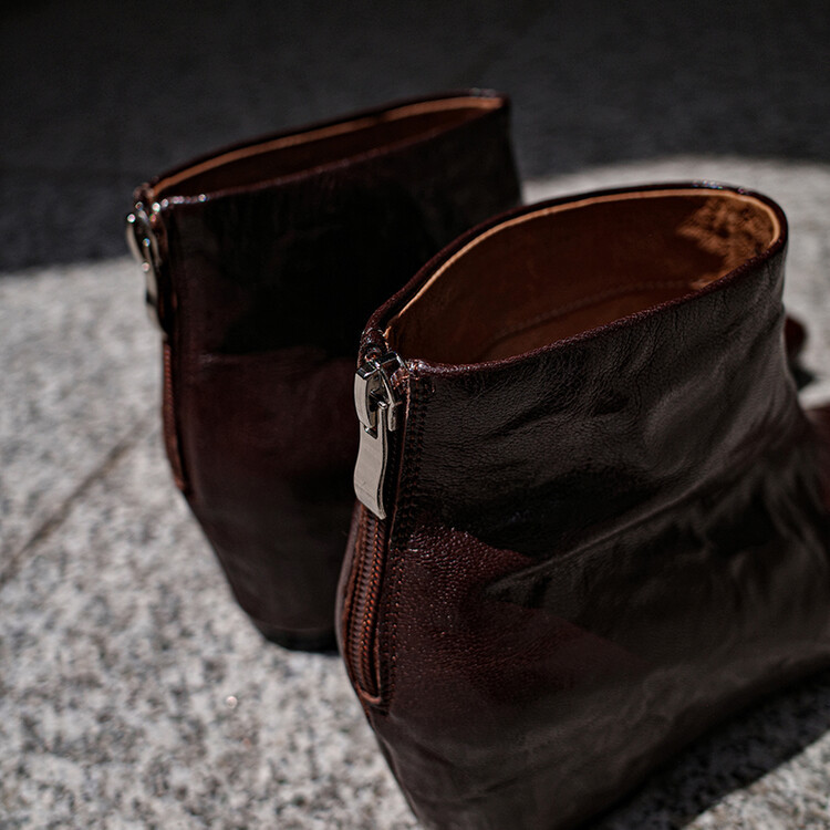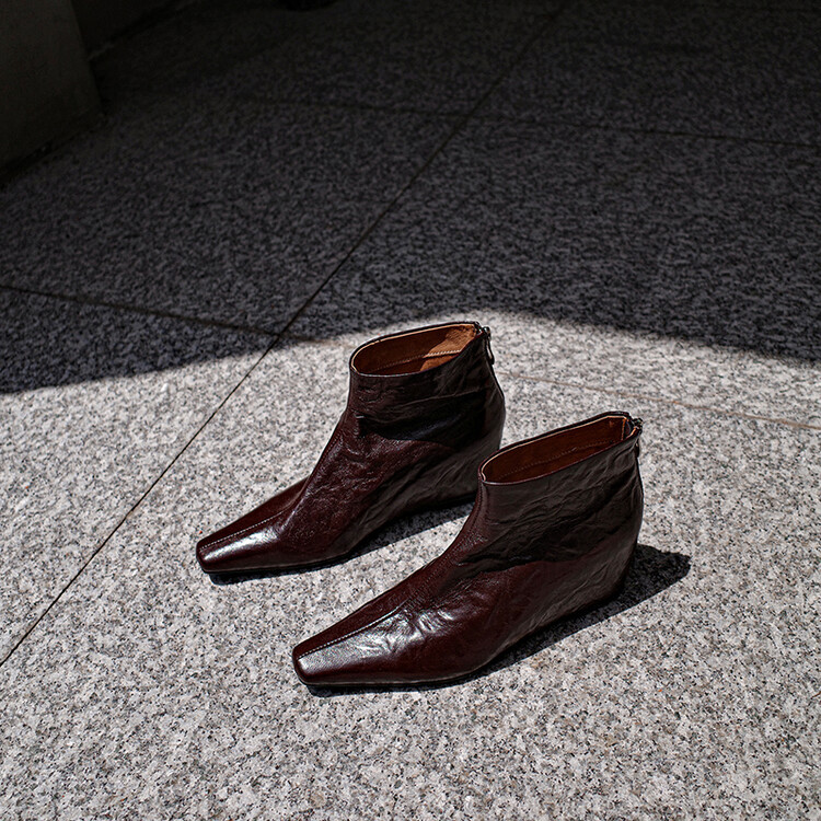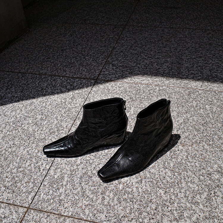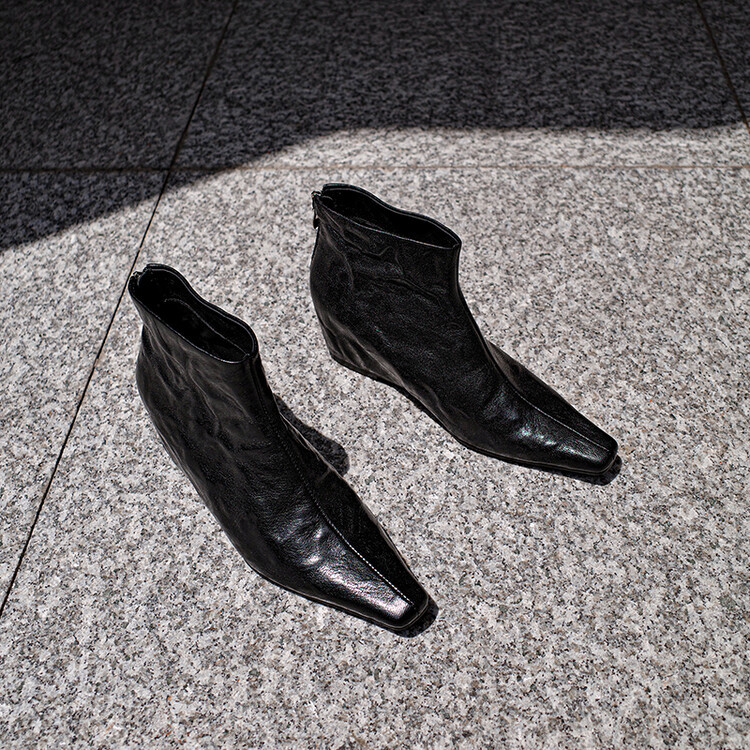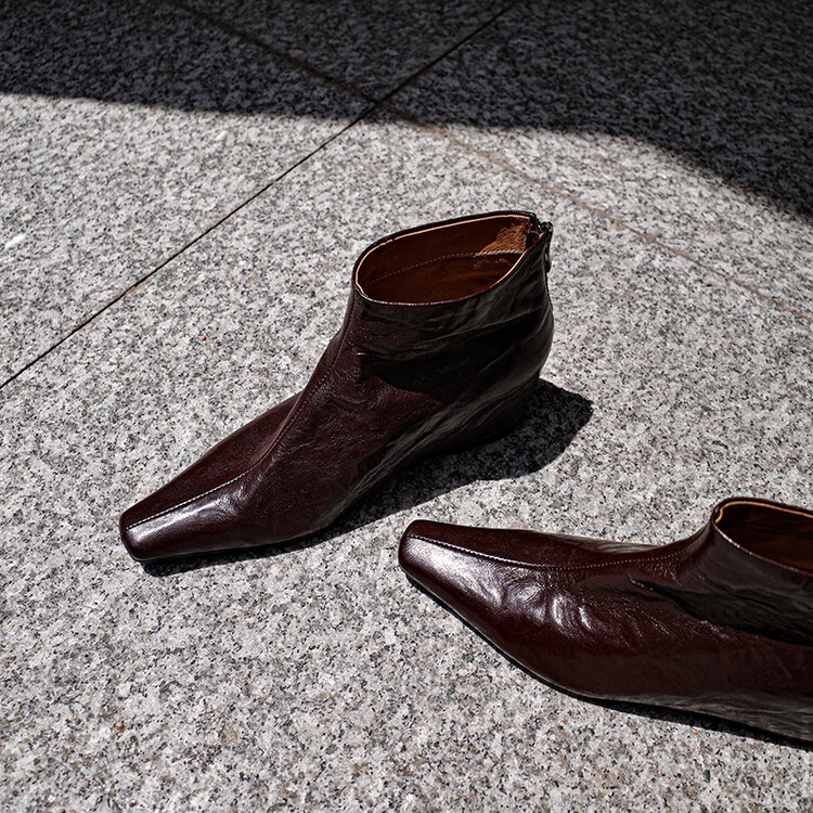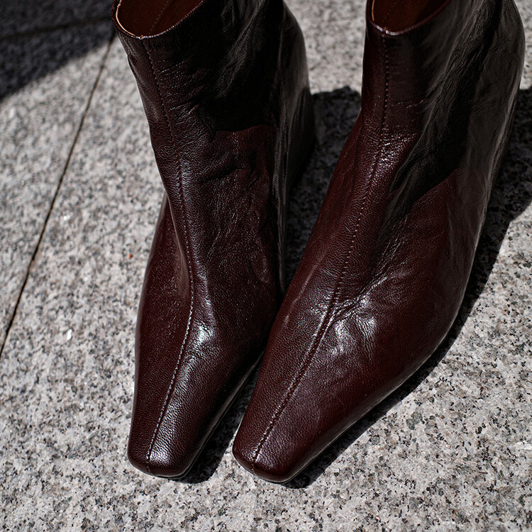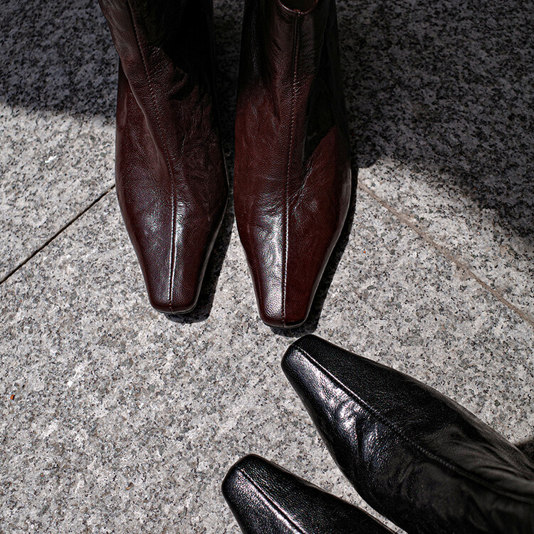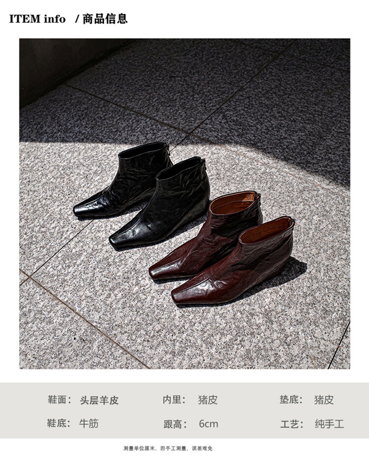 스퀘어 헤드 내부 높이 부츠 여성용 양가죽 및 알몸 부츠 2024 가을 및 겨울 새로운 하이힐 지퍼 여성용 쇼트 부츠 싱글 부츠스토어 가기