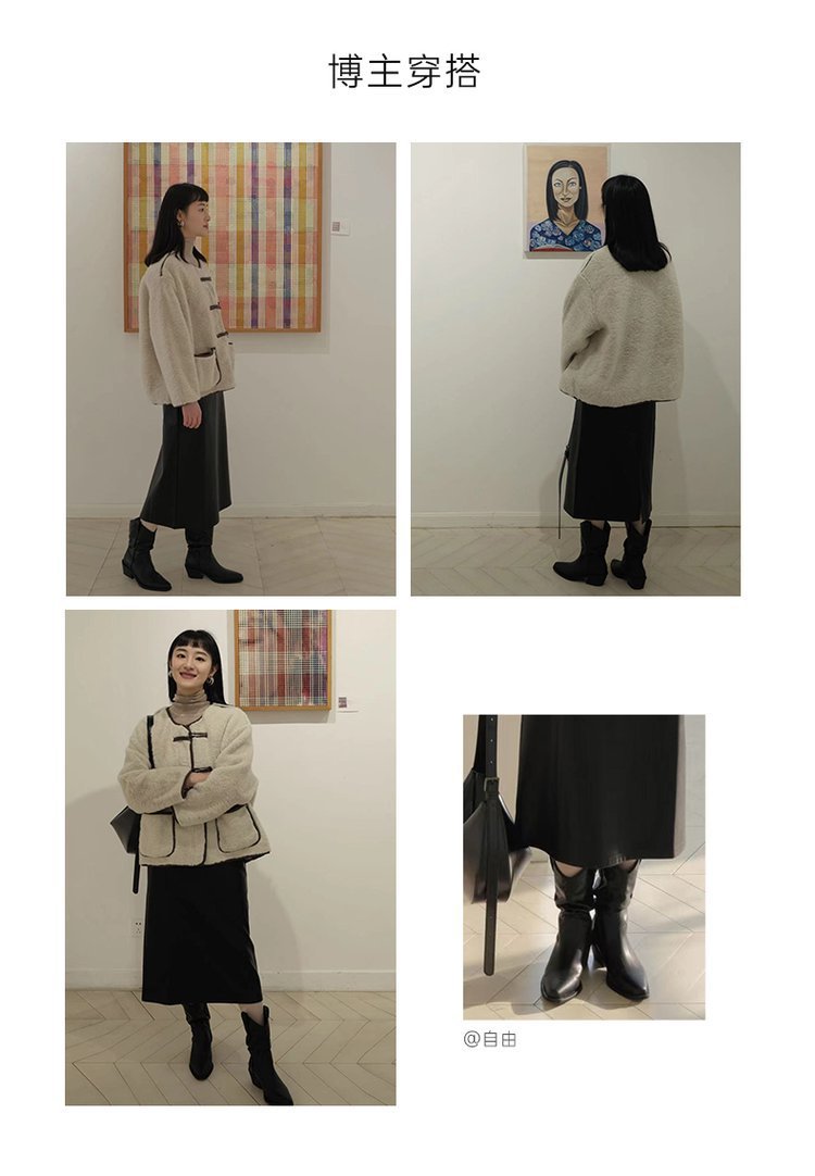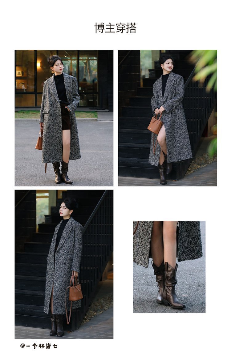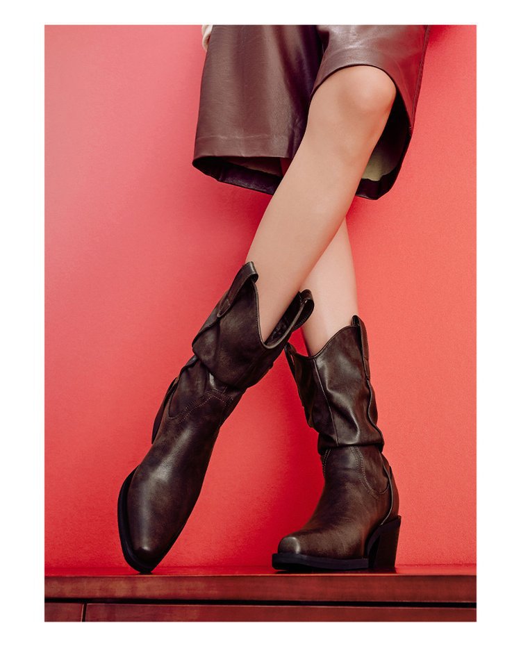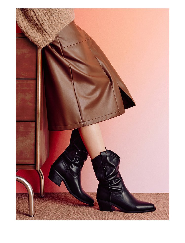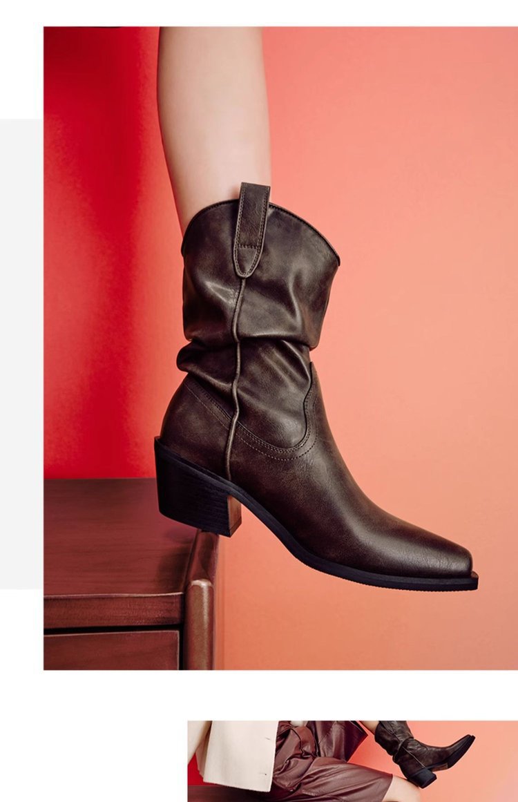 靴子女子秋日记忆中筒骑士靴尖头粗高跟短靴显瘦堆堆靴女