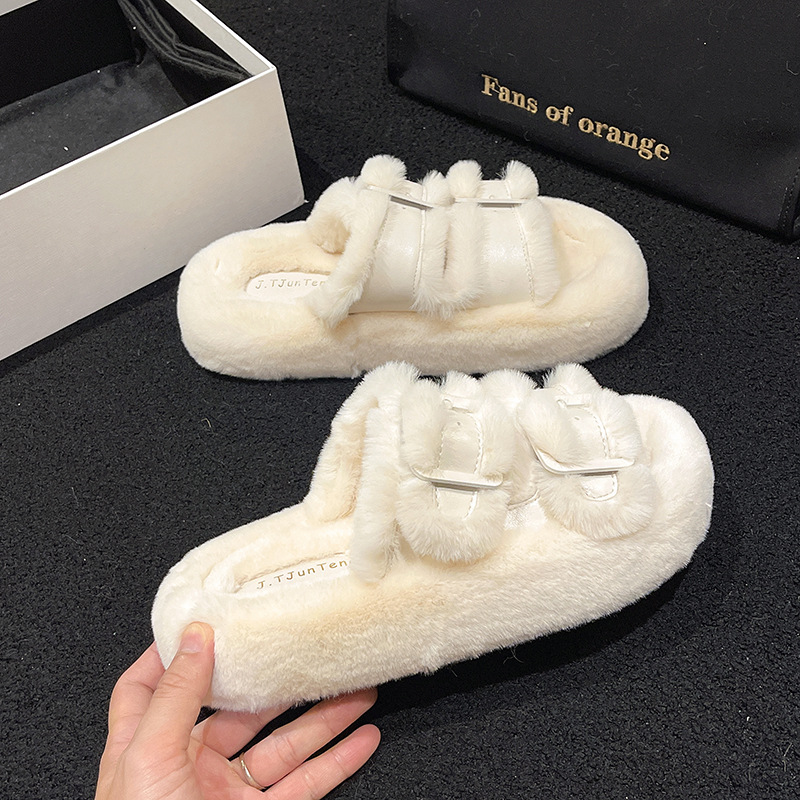 두꺼운 밑창 흰색 푹신한 슬리퍼 여성 야외 플랫폼 신발 여성의 새로운 2024 폭발 작은 향기로운 스타일 기모 면화 슬리퍼