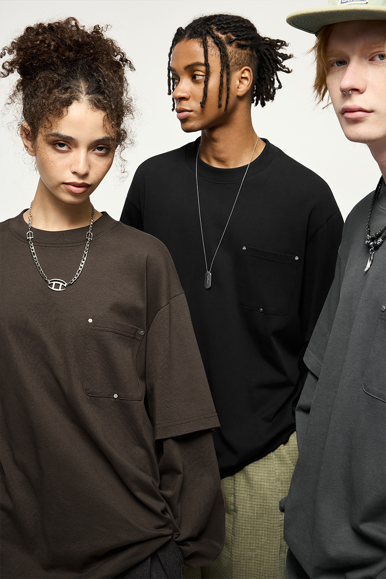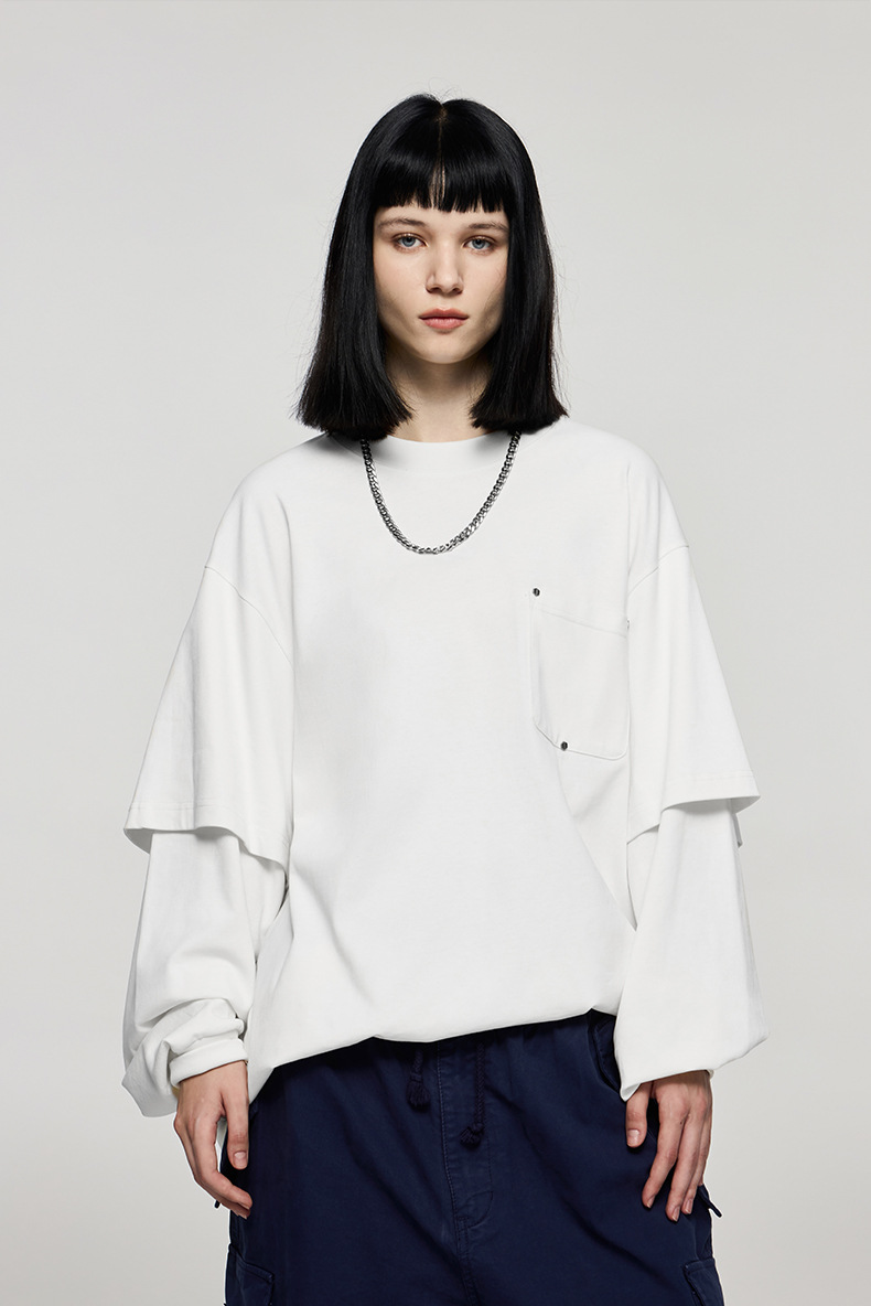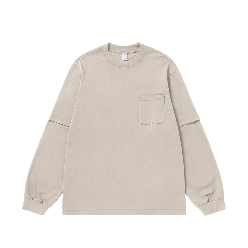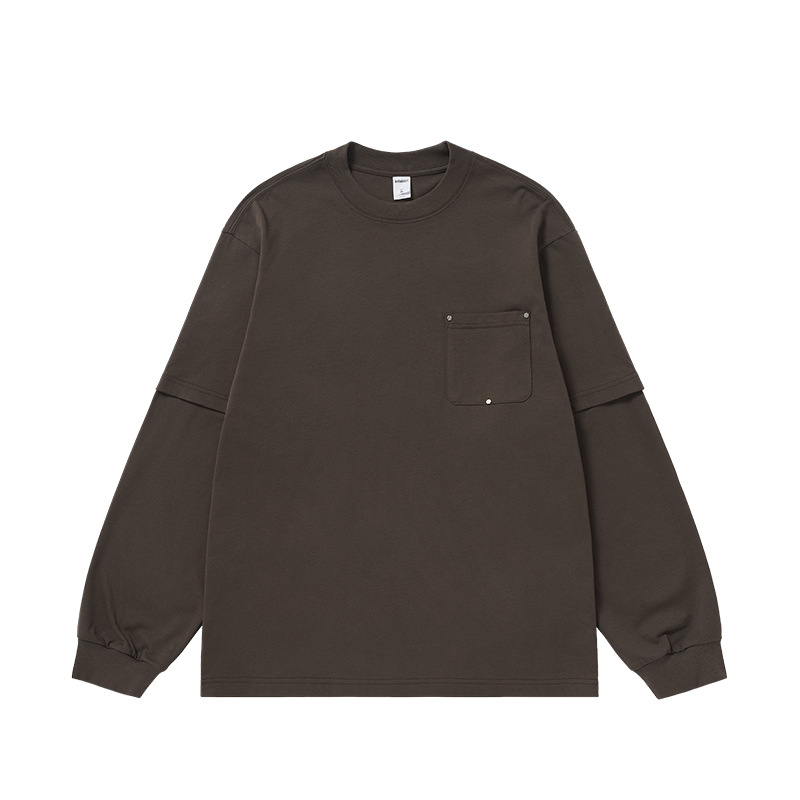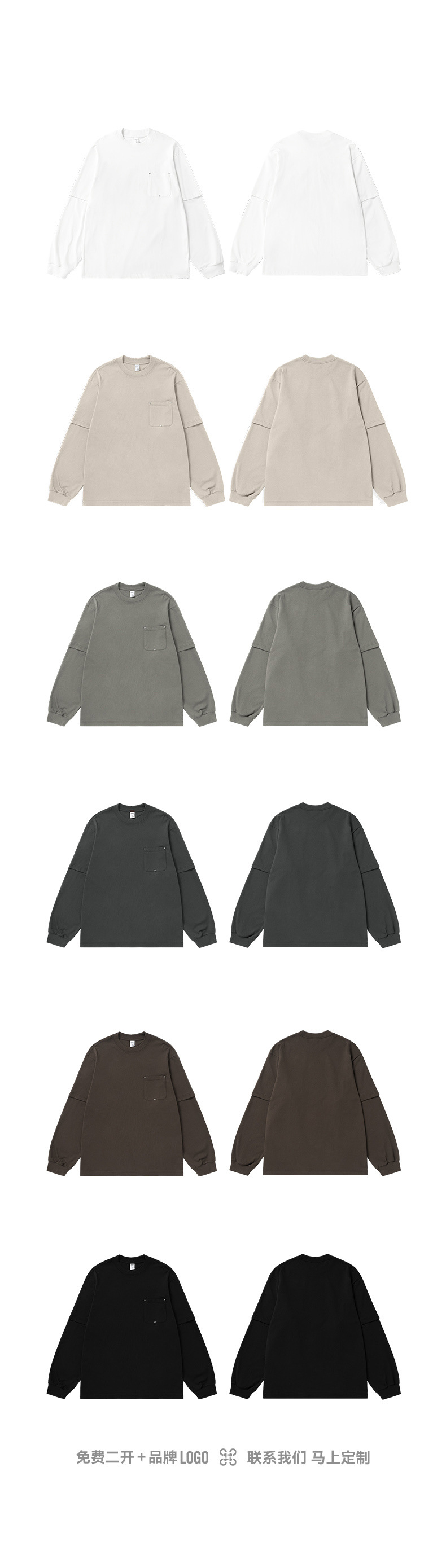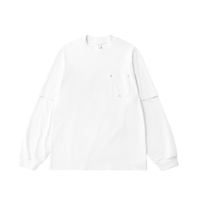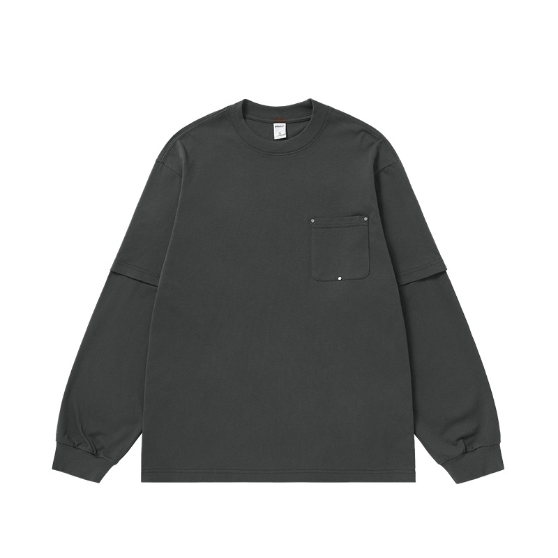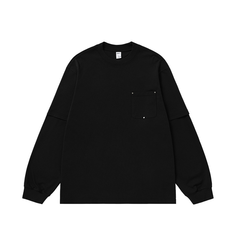 Jie Zhan 남성 의류 | 헤비 265g 스터드 페이크 투피스 긴팔 티셔츠 2025 가을 트렌디 브랜드 스크류 리벳 포켓스토어 가기
