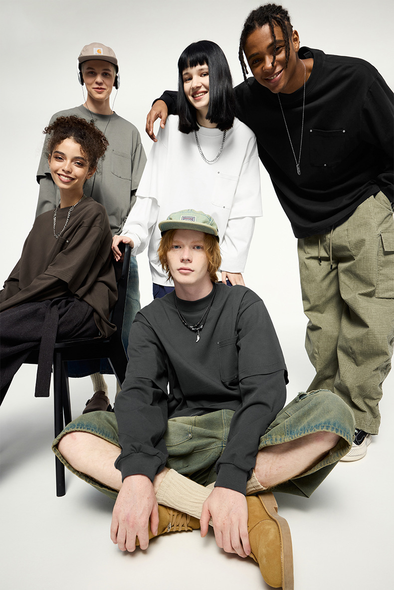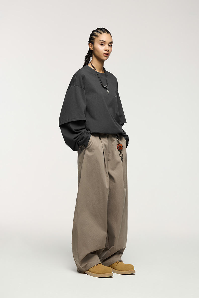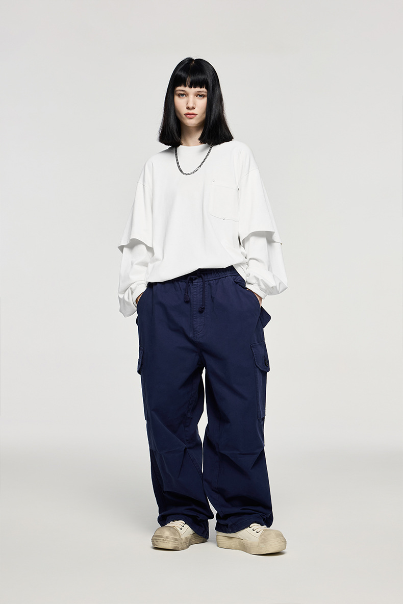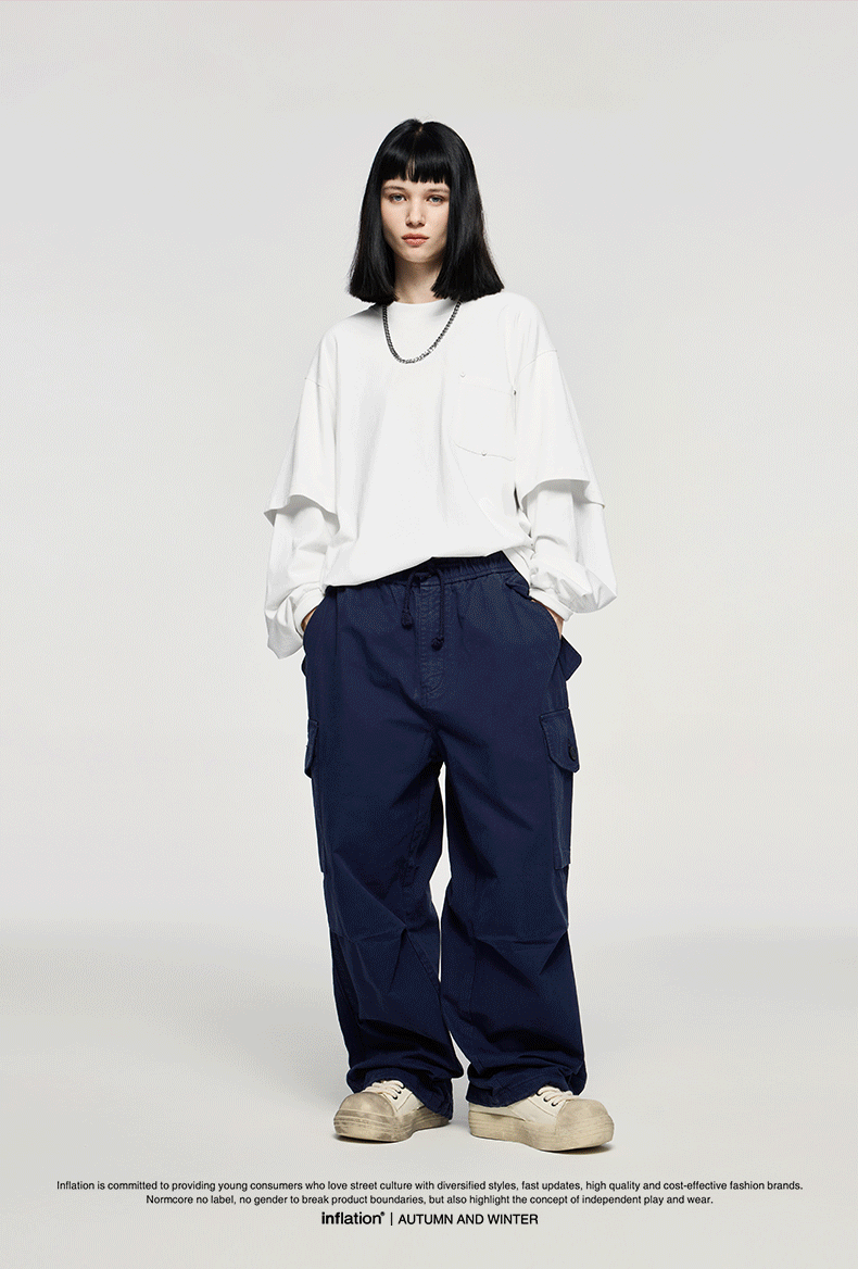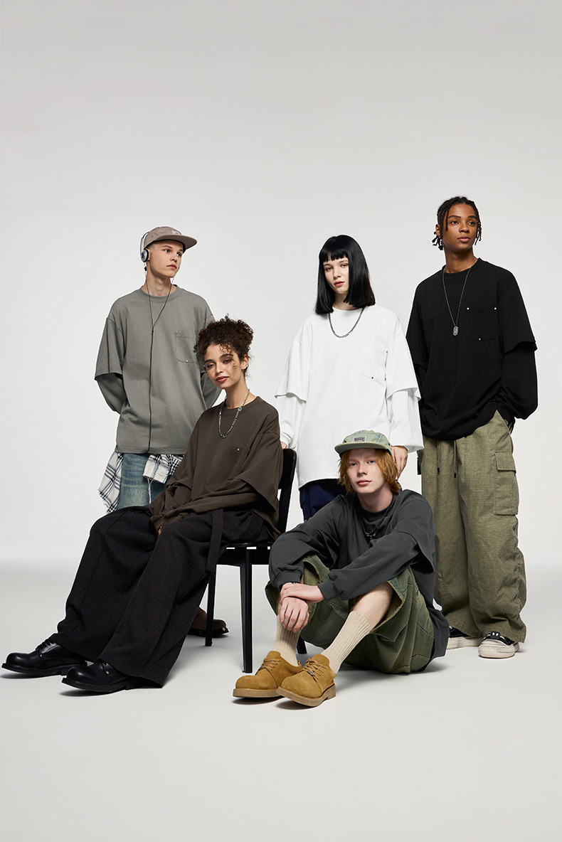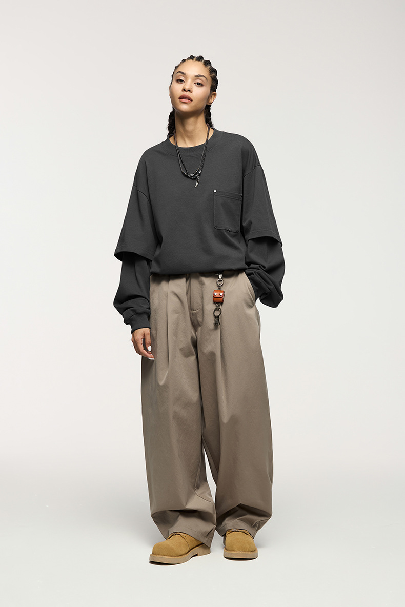 Jie Zhan 남성 의류 | 헤비 265g 스터드 페이크 투피스 긴팔 티셔츠 2025 가을 트렌디 브랜드 스크류 리벳 포켓스토어 가기