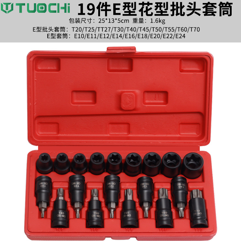 • 1.0/2inch E형 비트 19개 세트 블랙