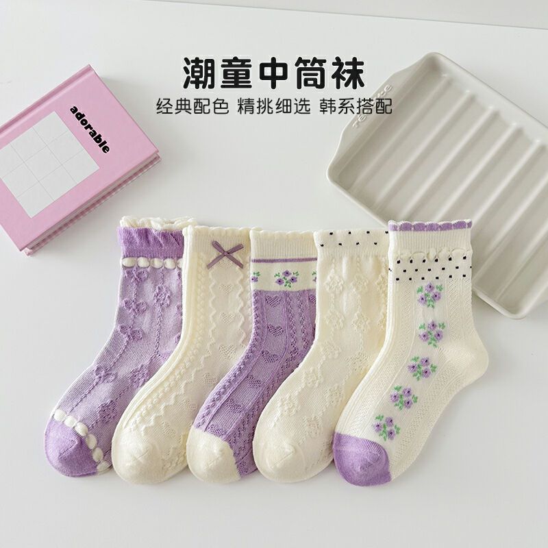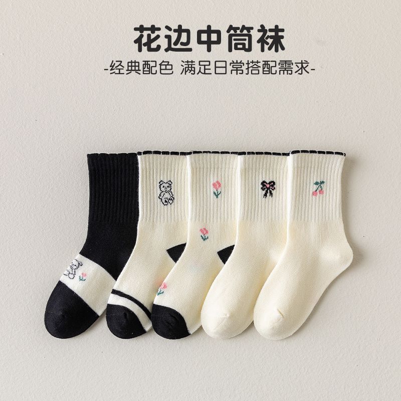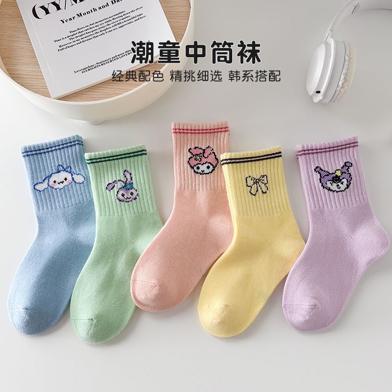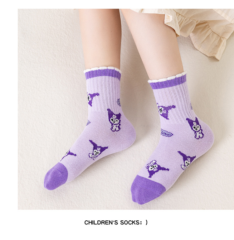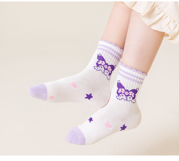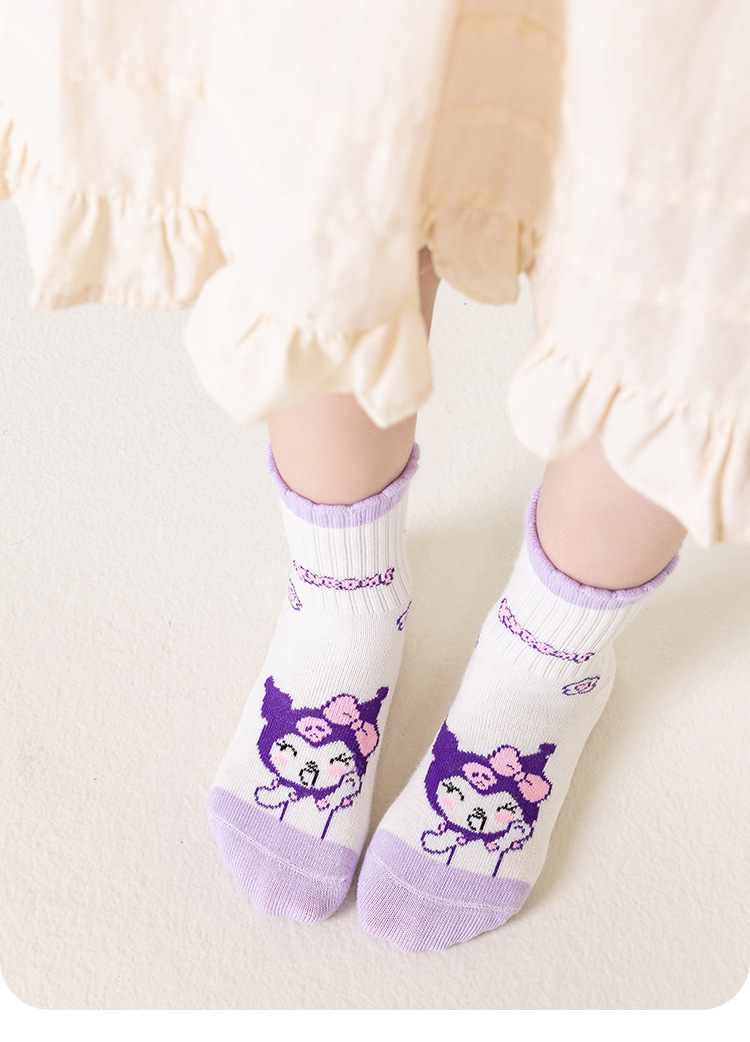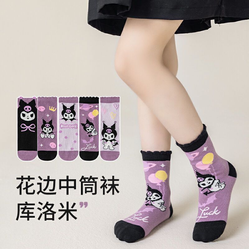 새로운 가을 만화 kulomi 소녀 양말 조수 팬 레이스 양말 큰 어린이 아기 면화 양말 도매