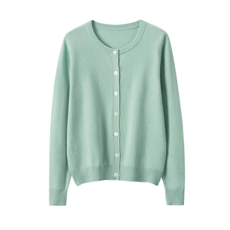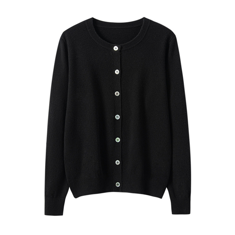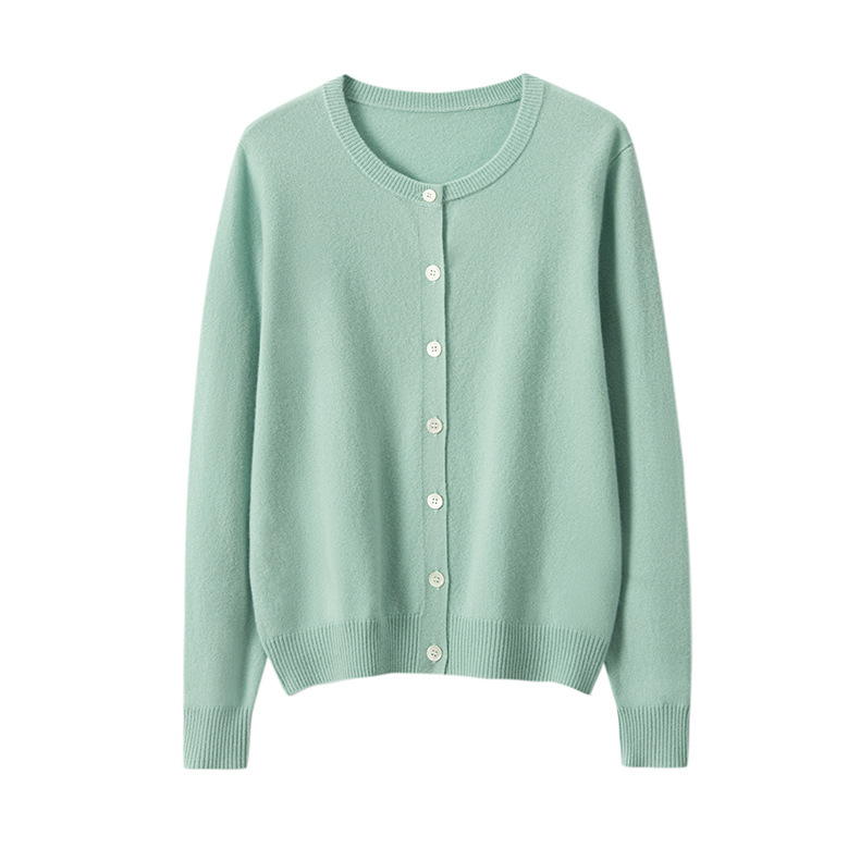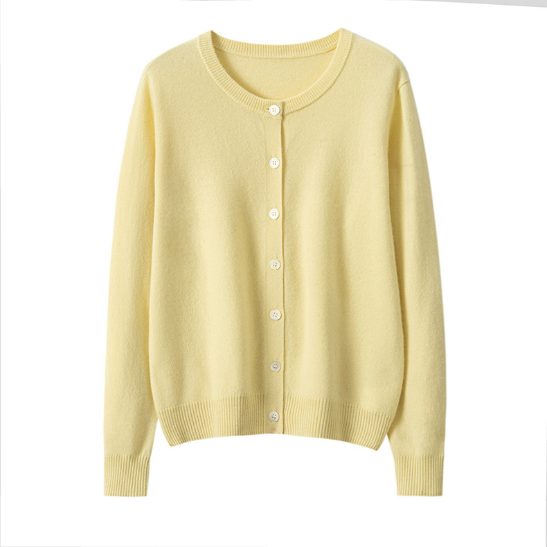100 캐시미어 외부 니트 카디건 단색 단일 브레스트 한국베이스 라운드 넥 순수 캐시미어 스웨터 재킷