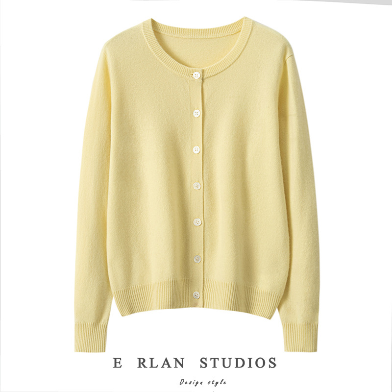 100 캐시미어 외부 니트 카디건 단색 단일 브레스트 한국베이스 라운드 넥 순수 캐시미어 스웨터 재킷스토어 가기