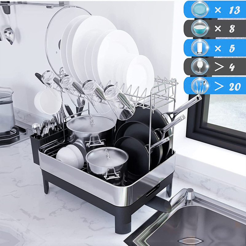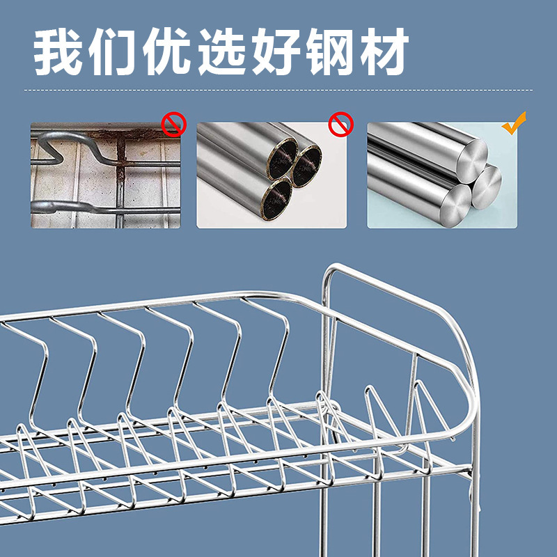 공장 사용자 지정 304 스테인레스 스틸 접시 배수 랙 더블 레이어 접시 저장 랙 가정용 식기 저장 상자스토어 가기